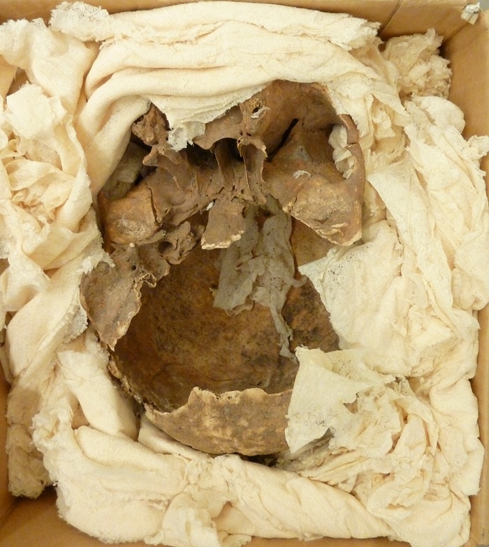 Schedel met brandmerken in vorm van gelijkvormig kruis en een Z, 2(?)