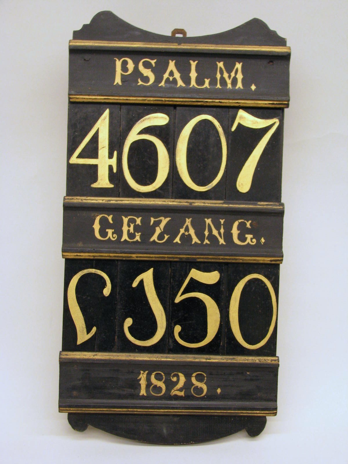 Psalm- en gezangbord met "psalm", "gezang" en "1828"