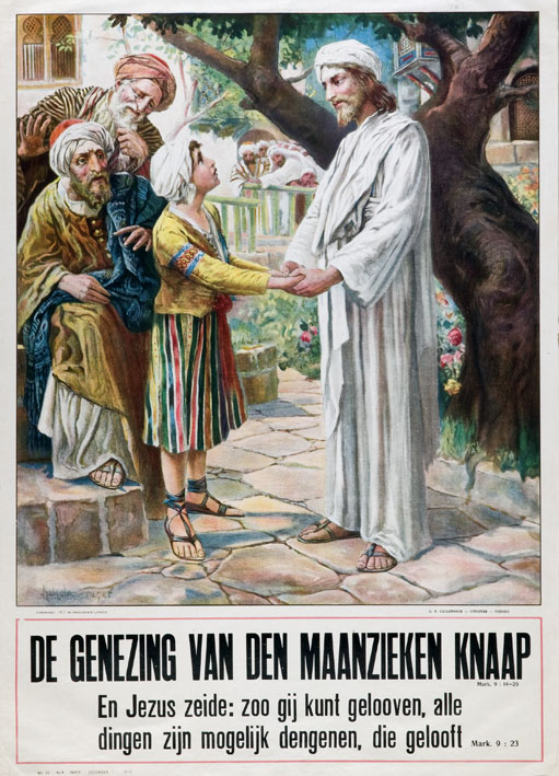 Bijbelplaat Genezingen en Opwekkingen: De genezing van den maanzieken knaap