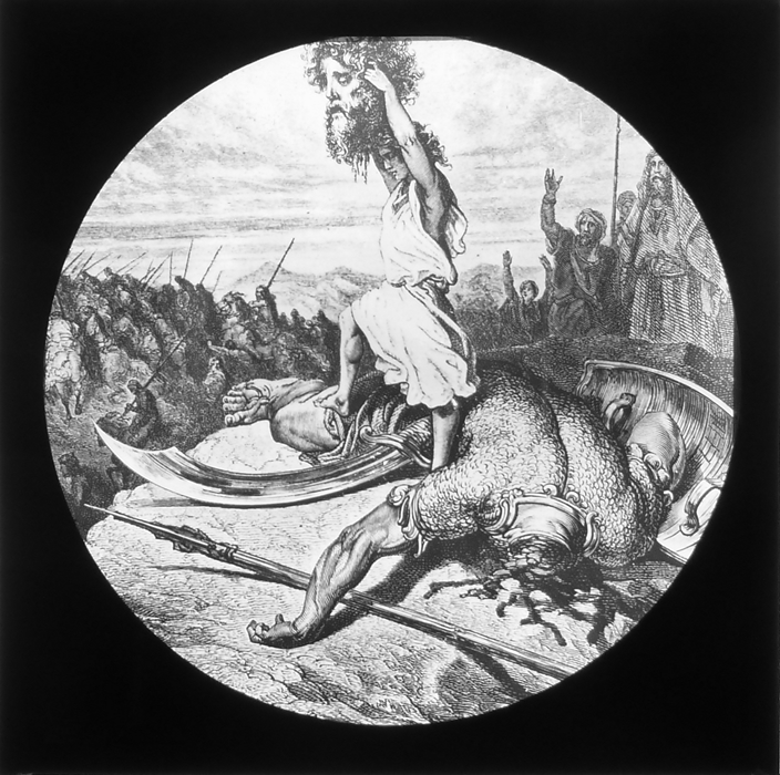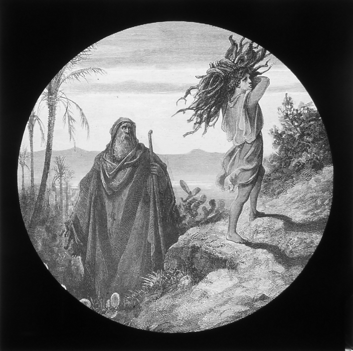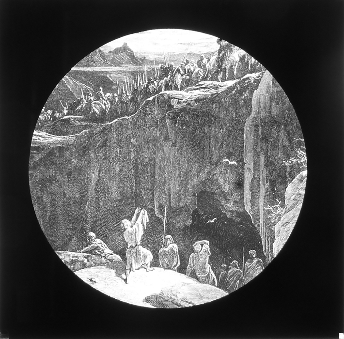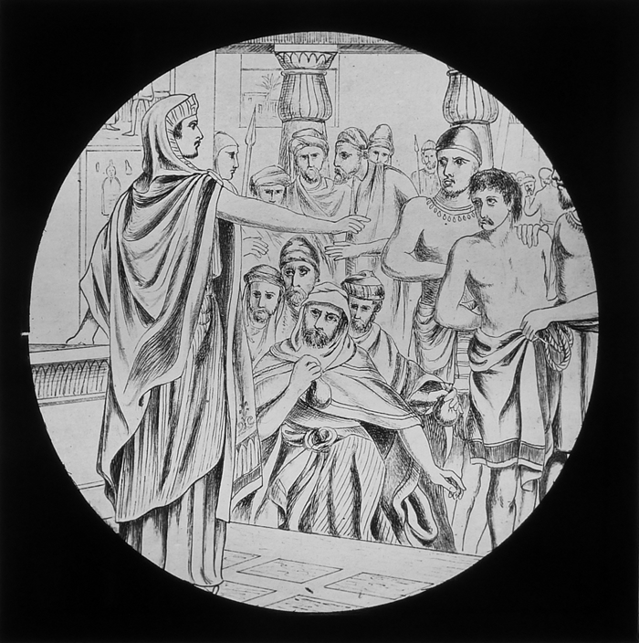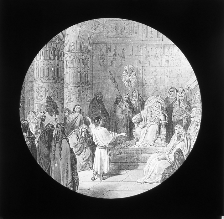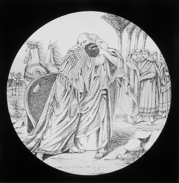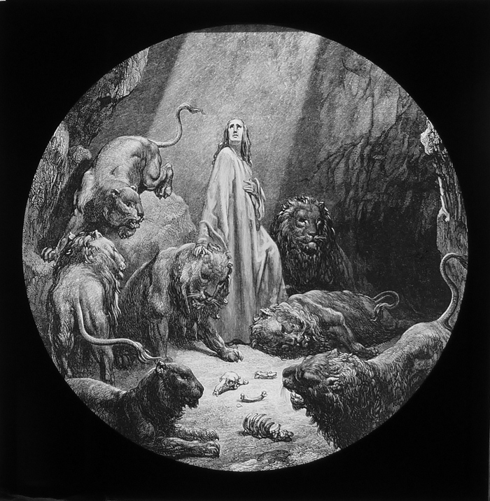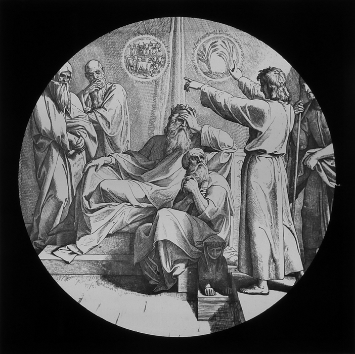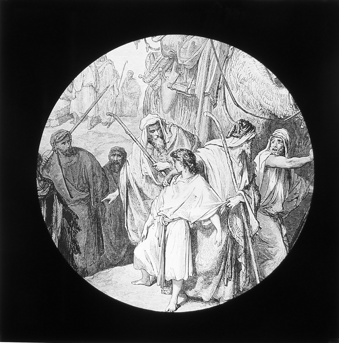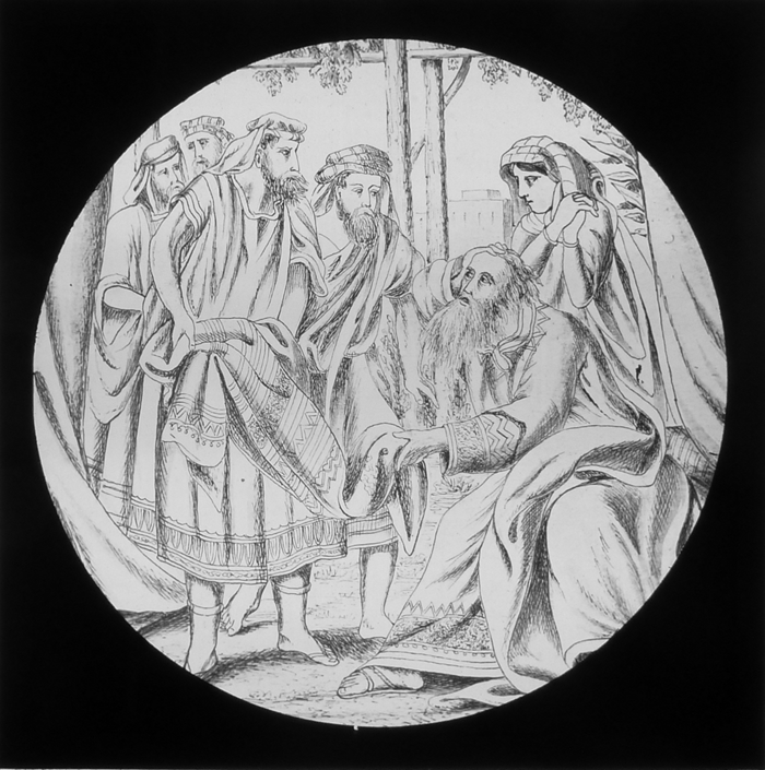 Vijftig lantaarnplaatjes met bijbelse voorstellingen in houten doos