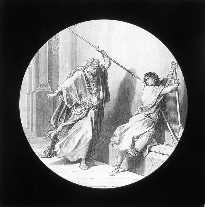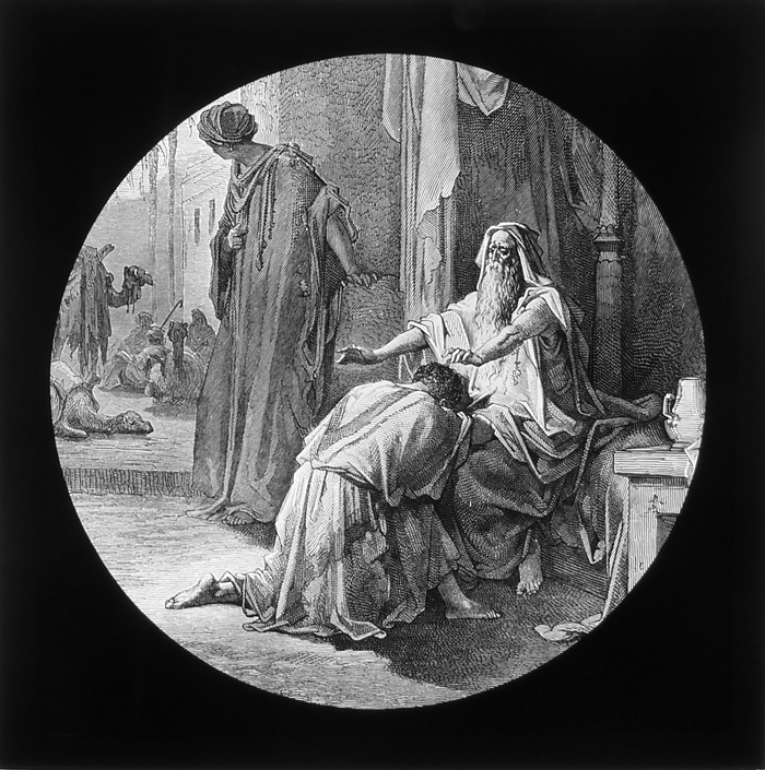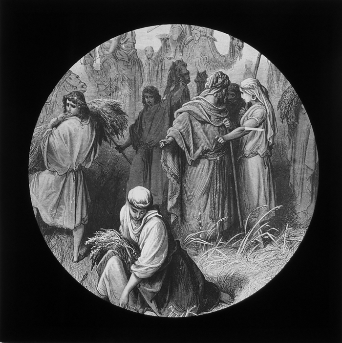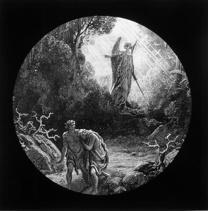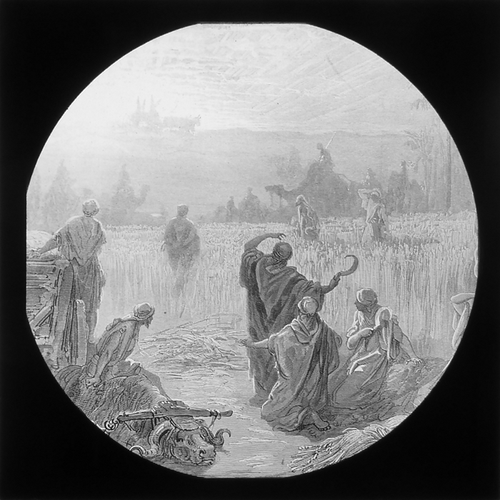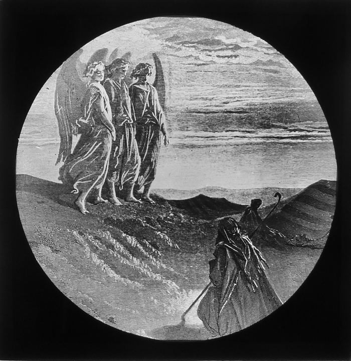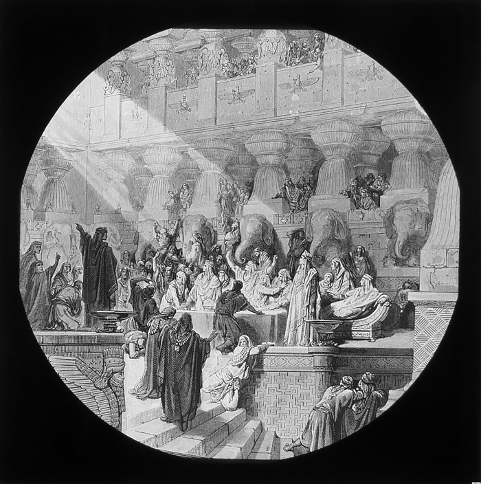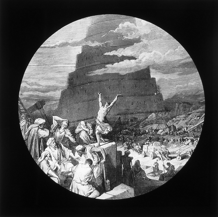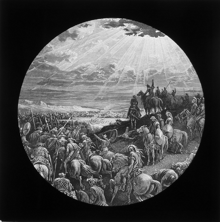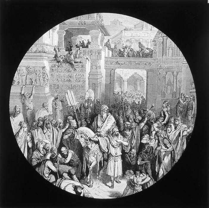 Vijftig lantaarnplaatjes met bijbelse voorstellingen in houten doos