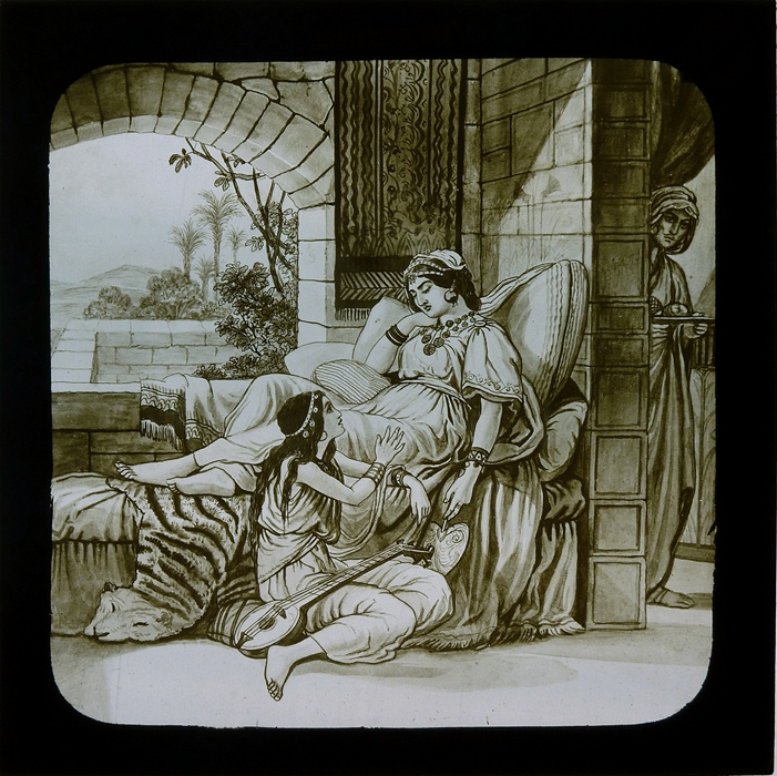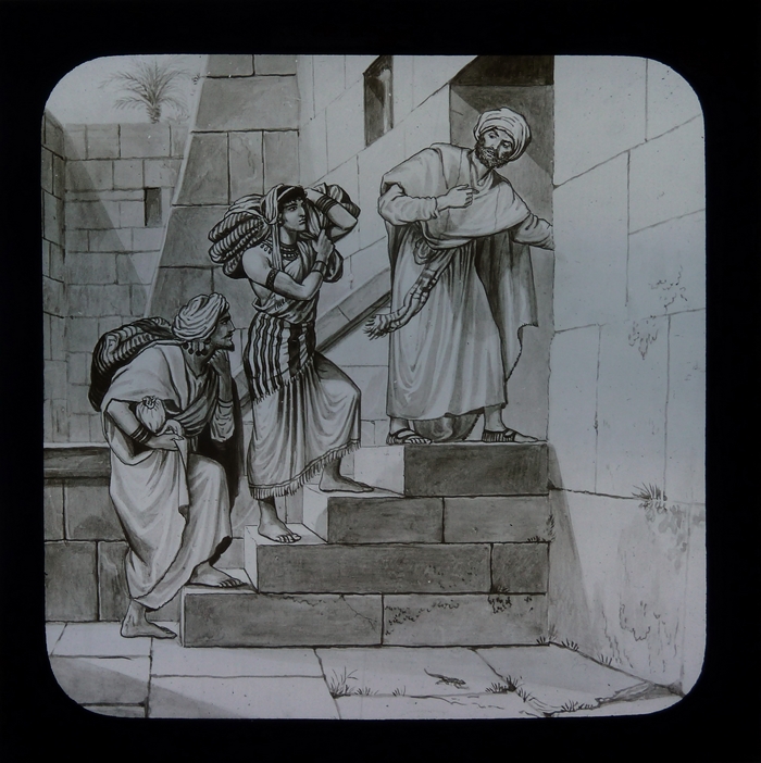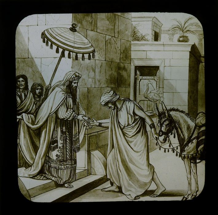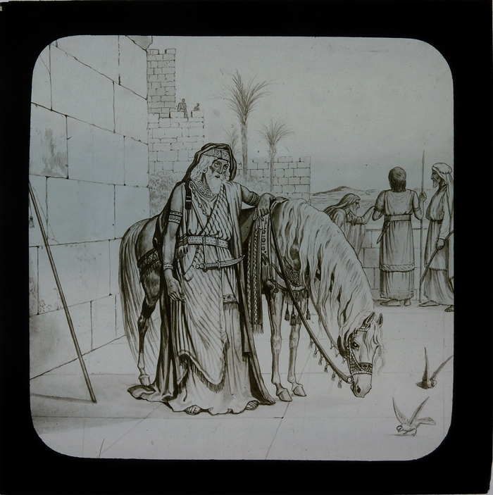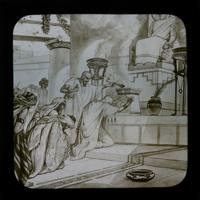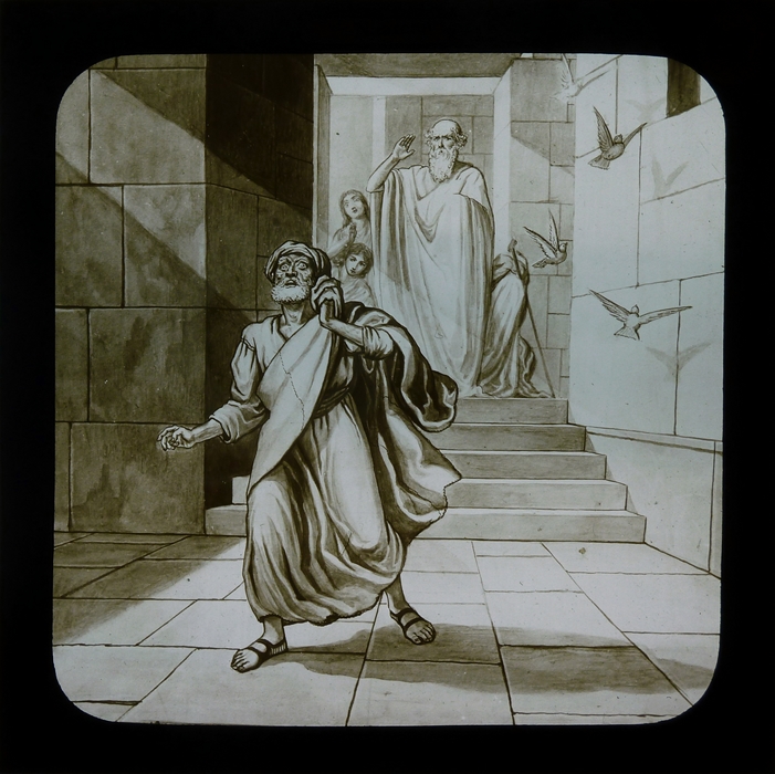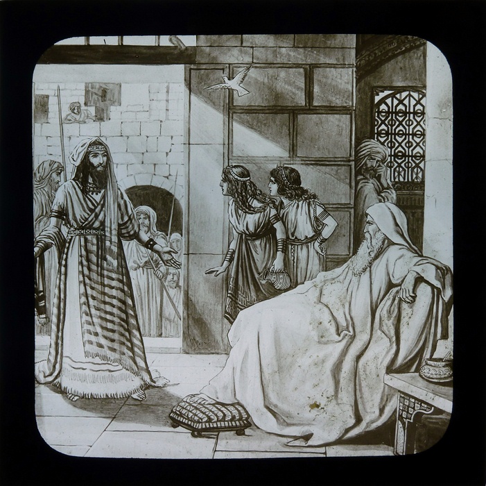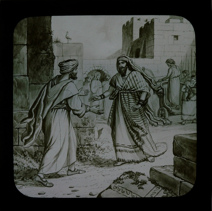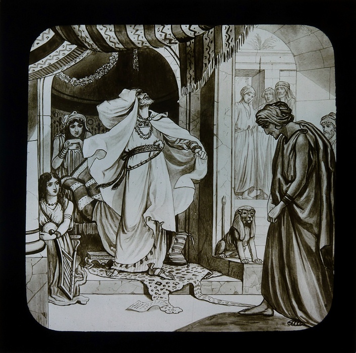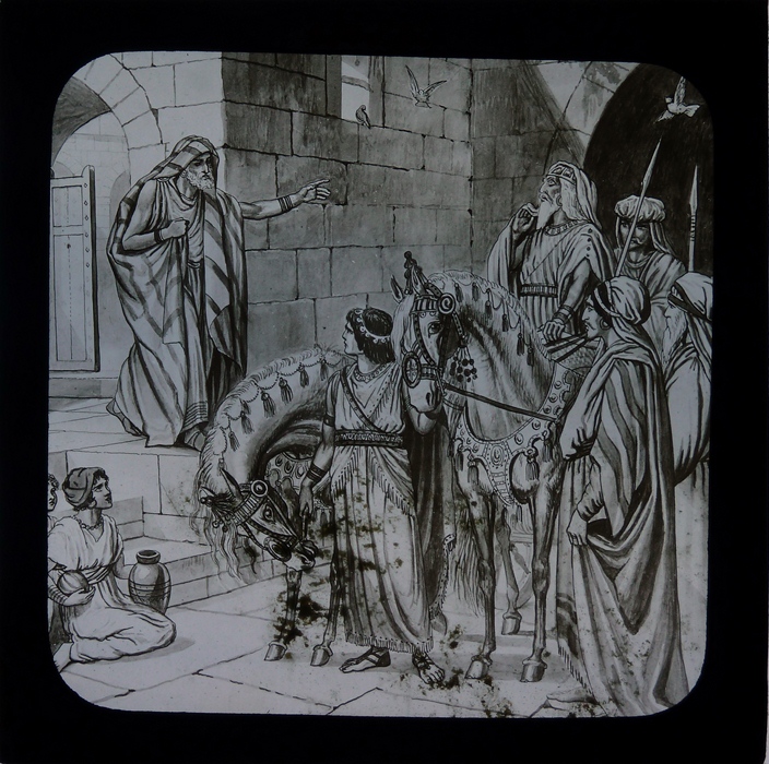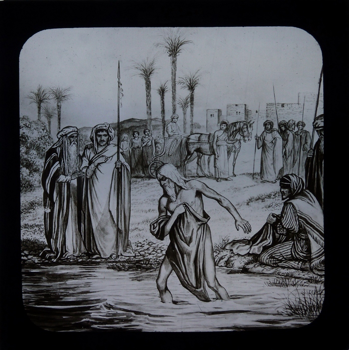 Zwart doosje met 12 lantaarnplaatjes over Naäman