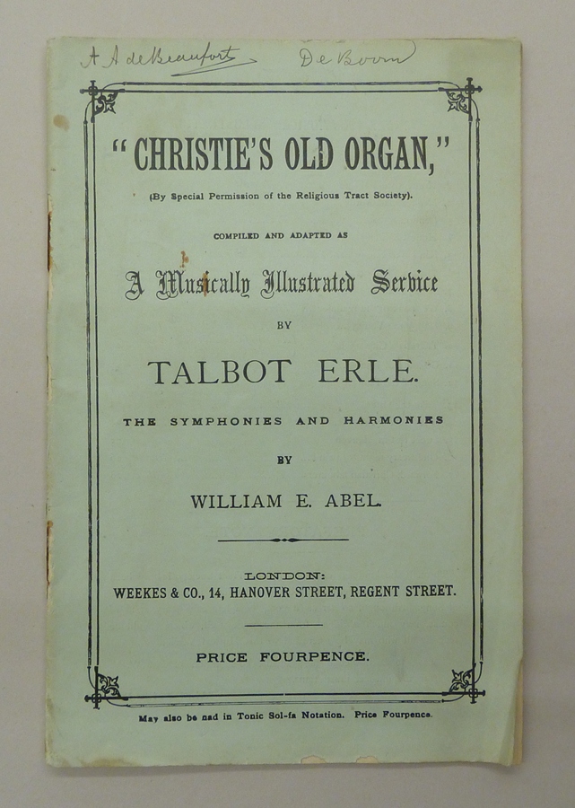 Boekje bij lantaarnplaatjes van "Christies old organ"