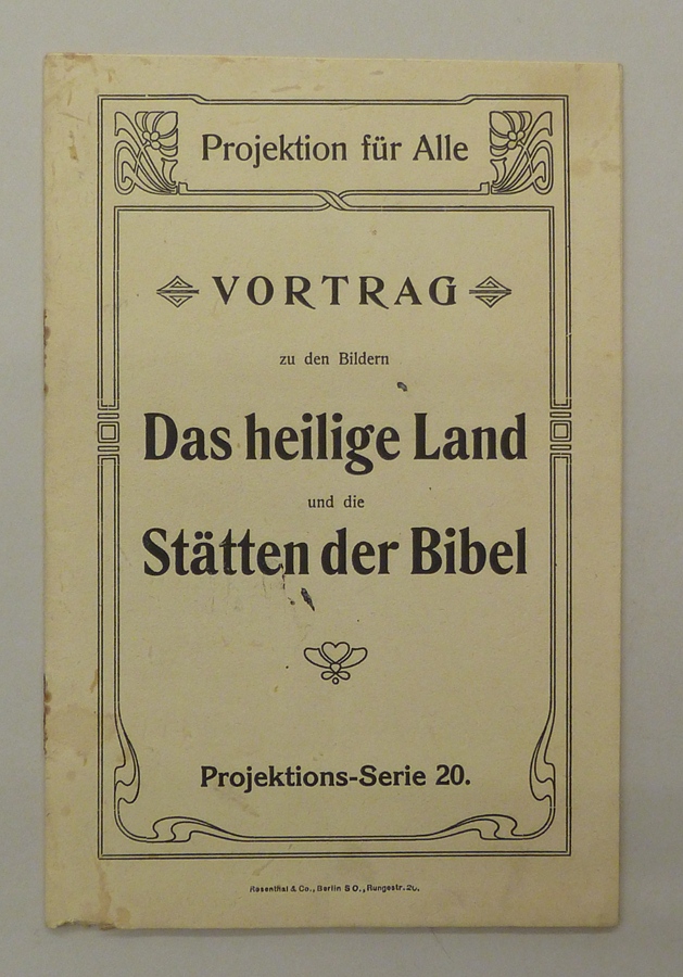 Boekje bij lantaarnplaatjes van "Das heilige Land und die Stätten der bibel"