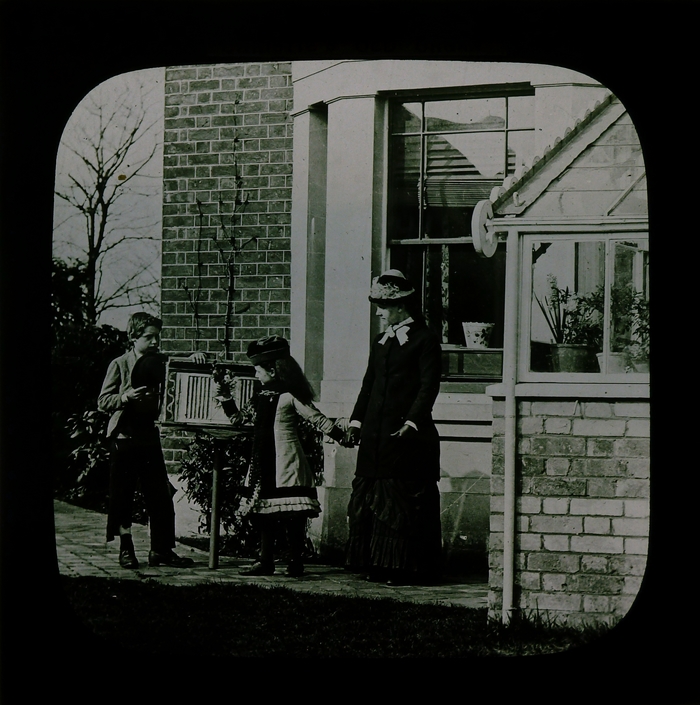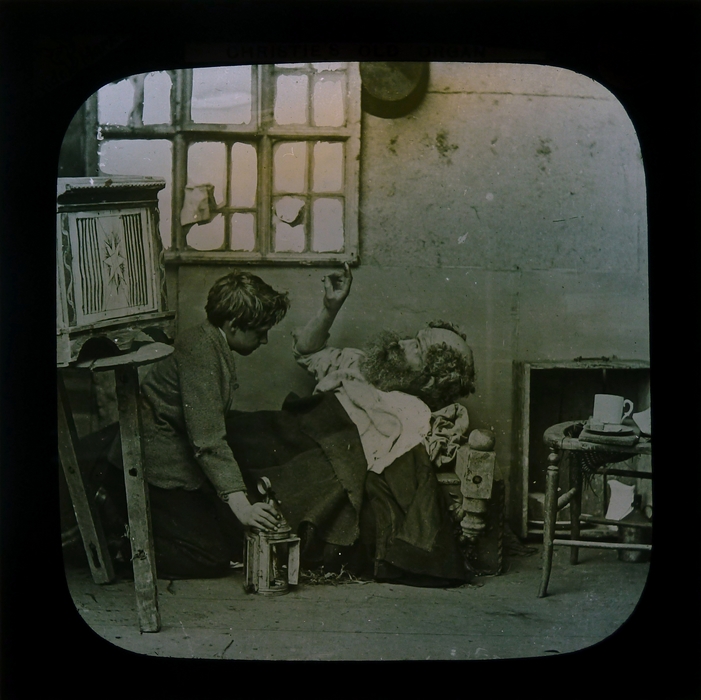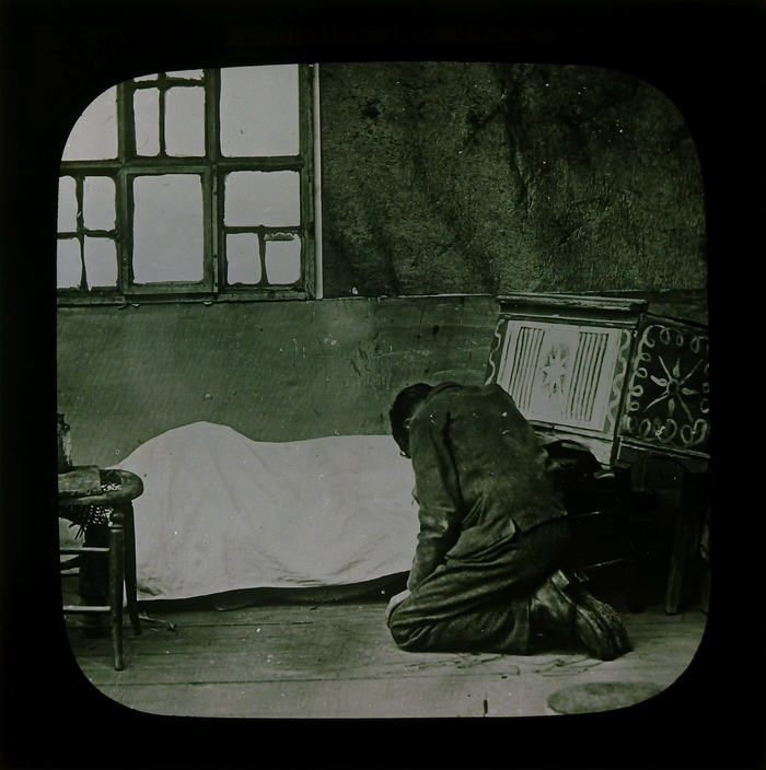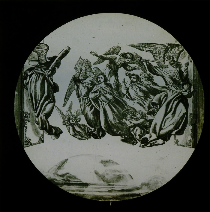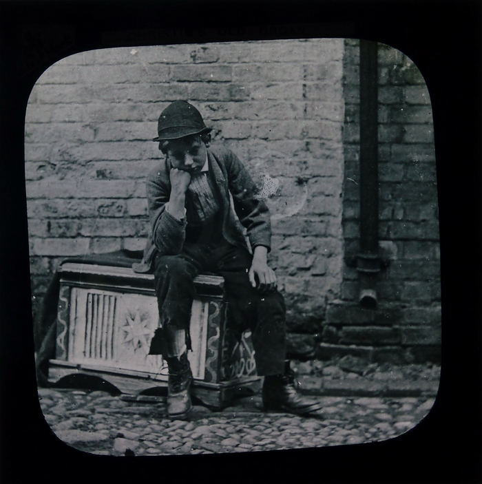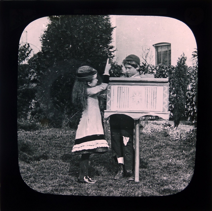 Zwart doosje met 11 (nr. 15 ontbreekt) lantaarnplaatjes van "Christie's old organ"