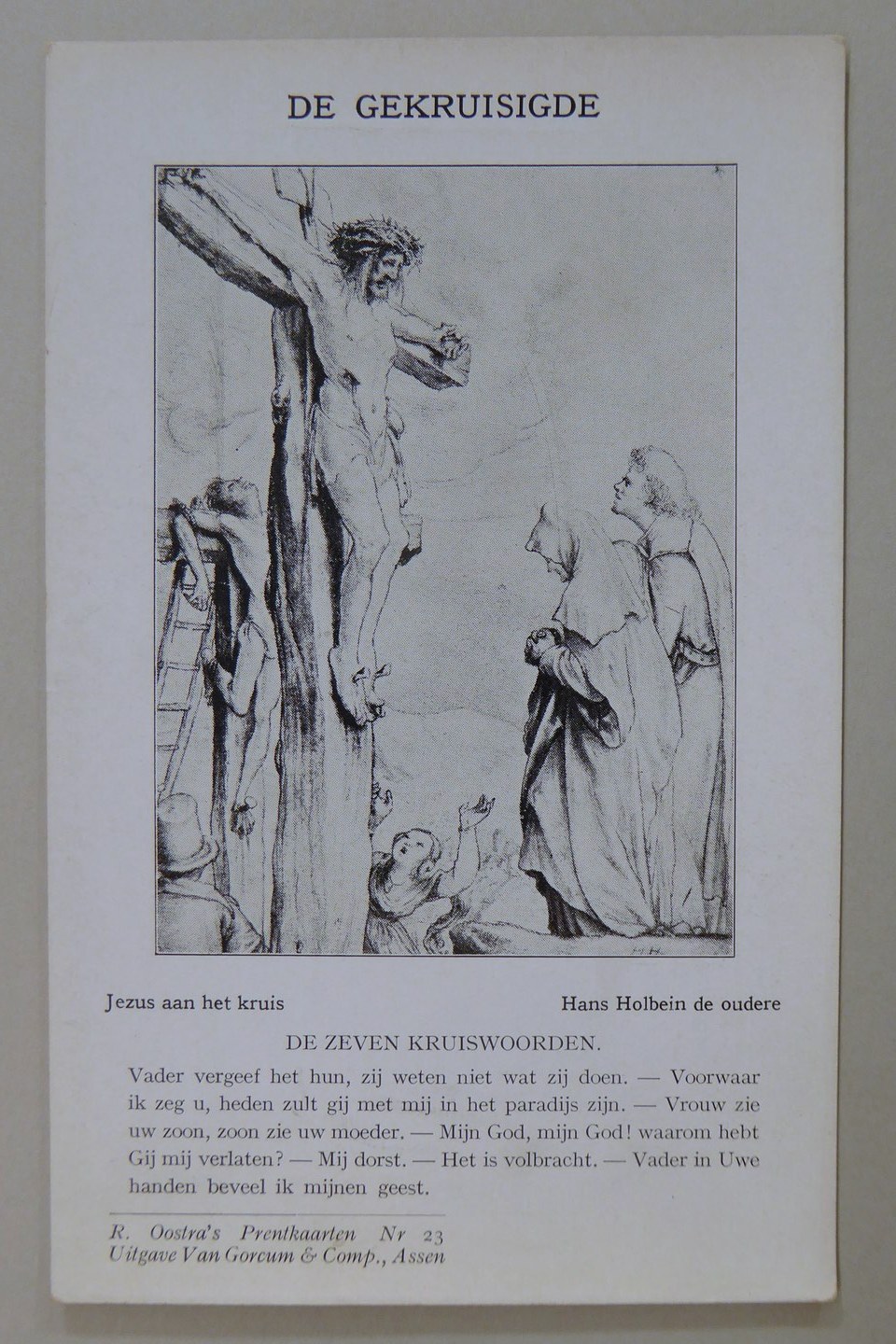 R. Oostra's Prentkaarten: No. 23 De gekruisigde, Hans Holbein de Oudere