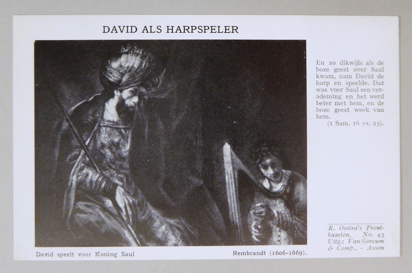 R. Oostra's Prentkaarten: No. 43 David als harpspeler, Rembrandt