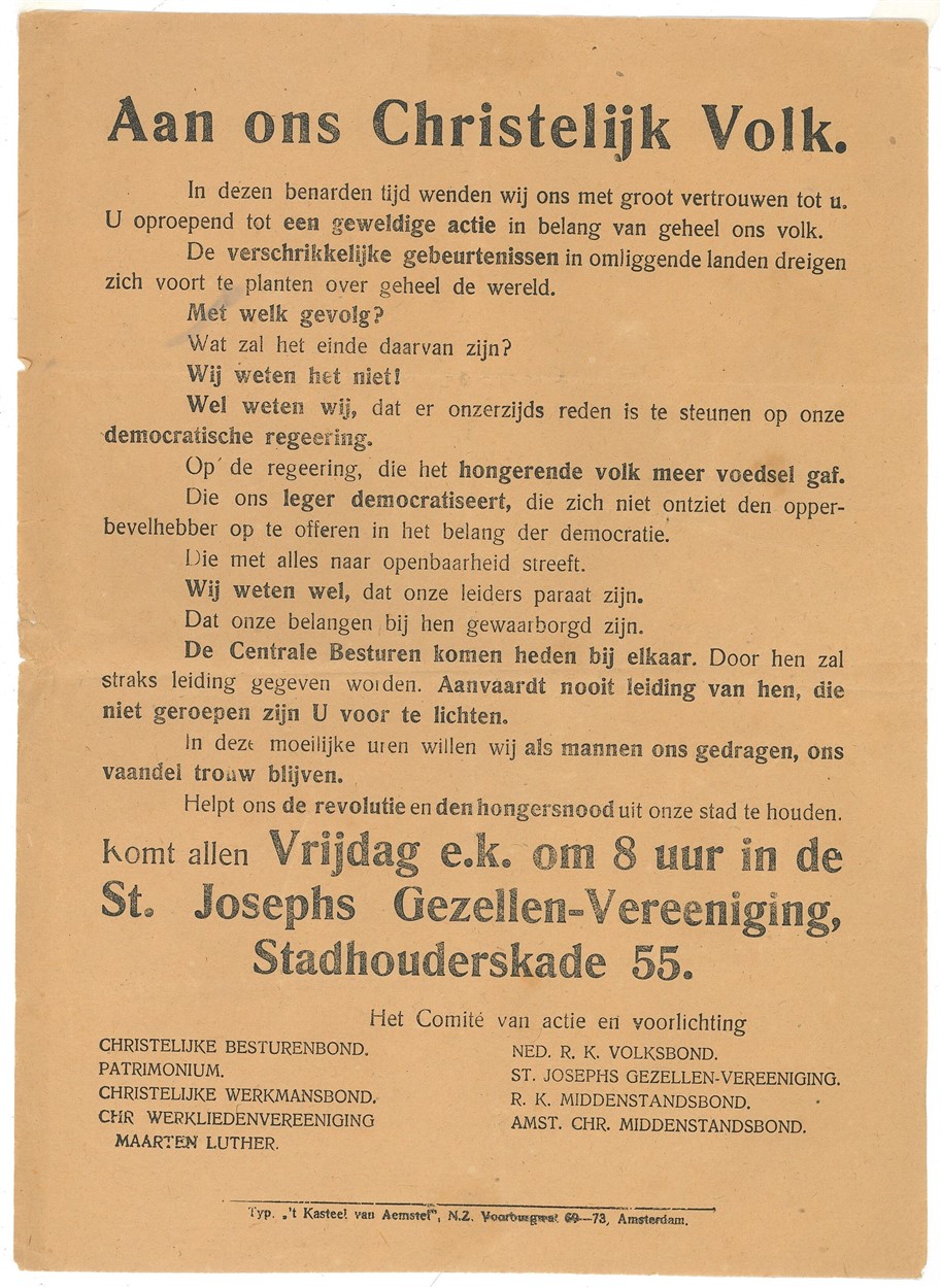 Strooiblad n.a.v. woelingen van 1918 rond Troelstra, SDAP en de 'moderne vakbeweging': Aan ons Christelijk Volk...