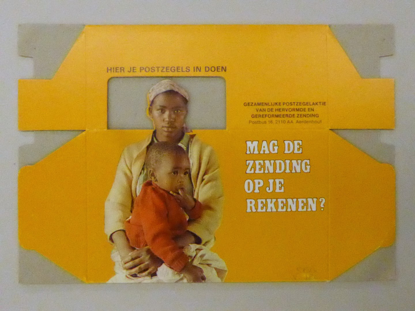 Vouwdoos voor het maken van postzegelspaarpot met "Mag de zending op je rekenen?"
