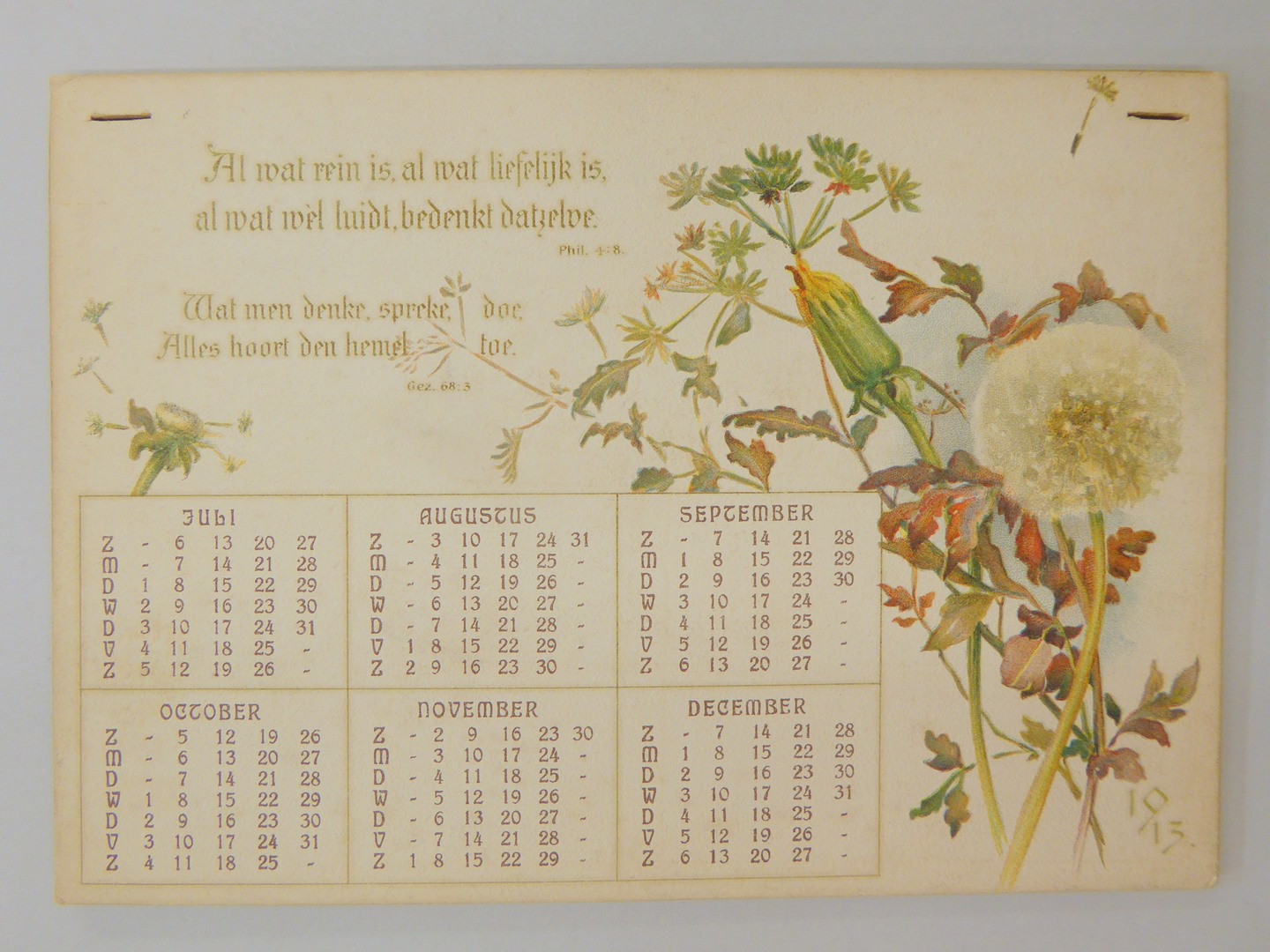 Diaconessenkalender met een spreuk en gedecoreerd met bloemetjes