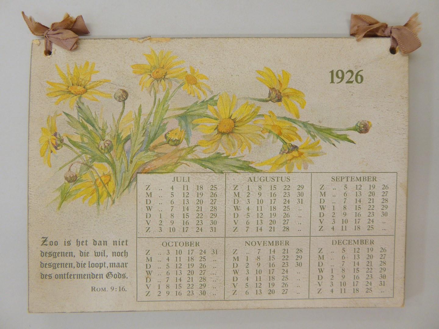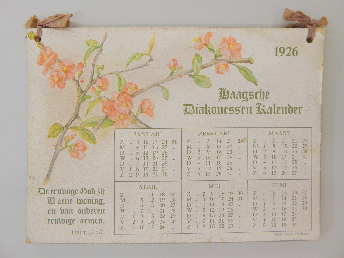 Haagsche Diakonessenkalender met een spreuk en gedecoreerd met bloemetjes