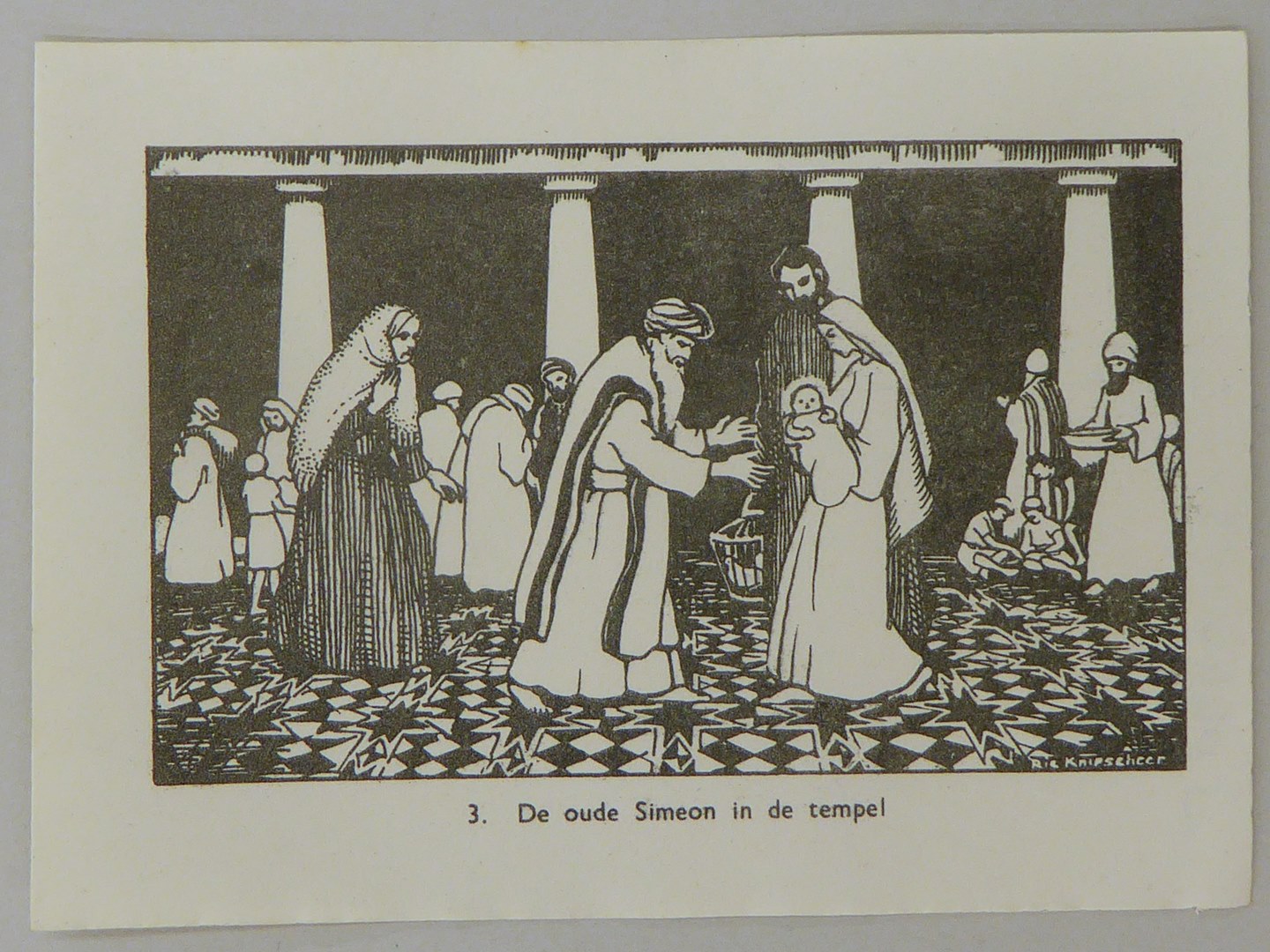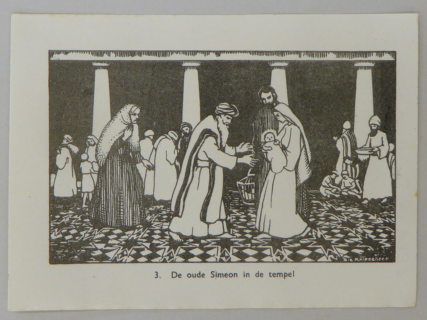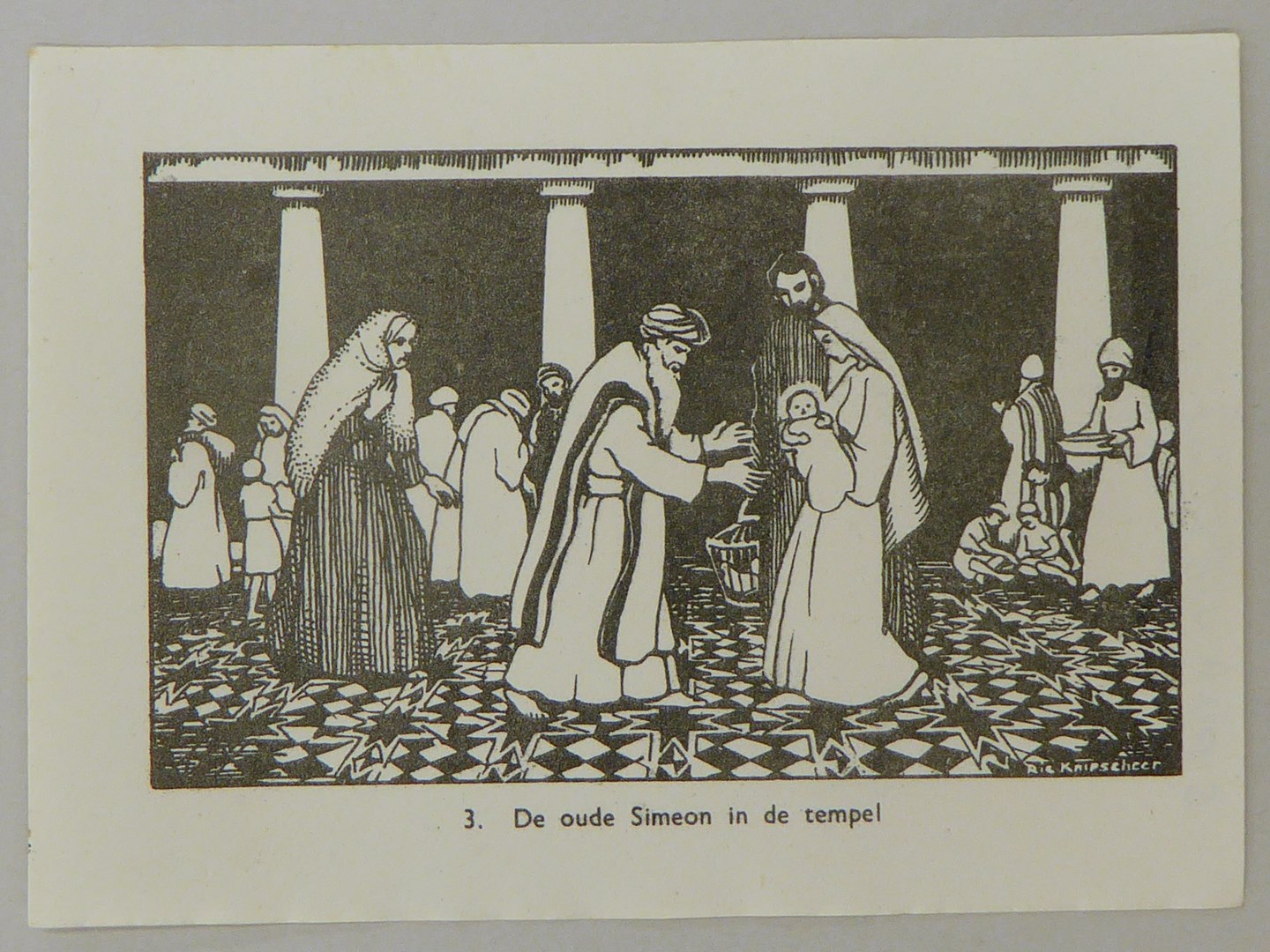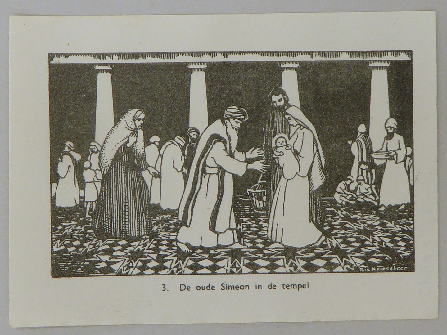 Bijbelplaatje met tekst: No. 3 De oude Simon in de temepel (4 stuks)