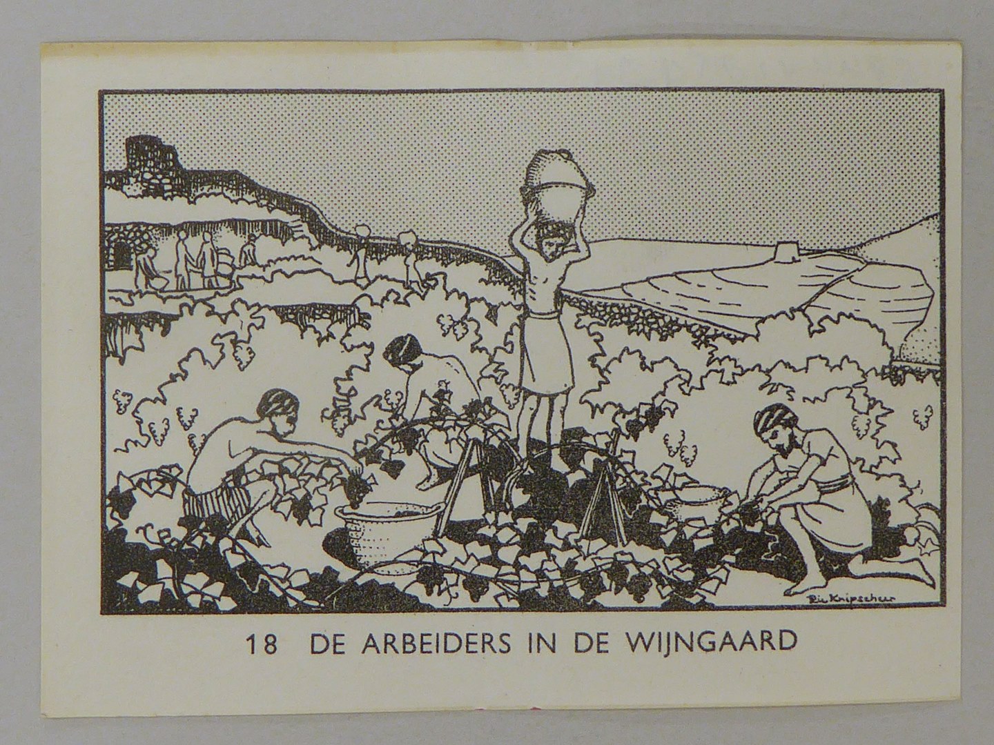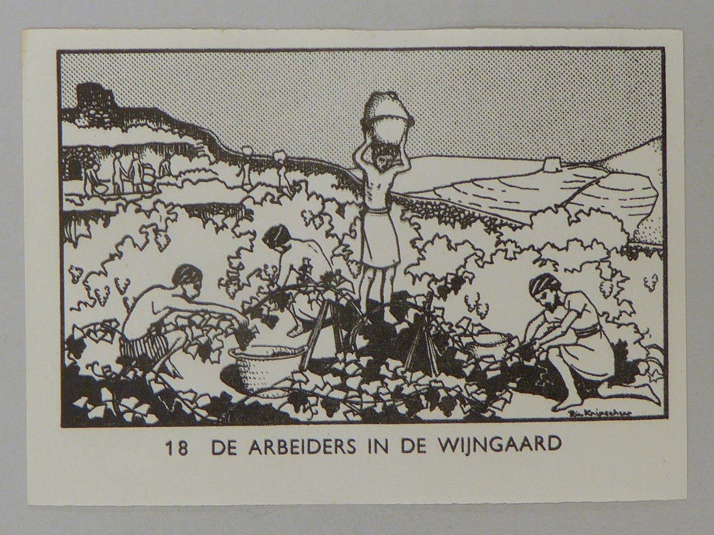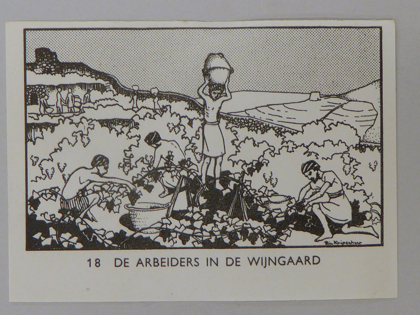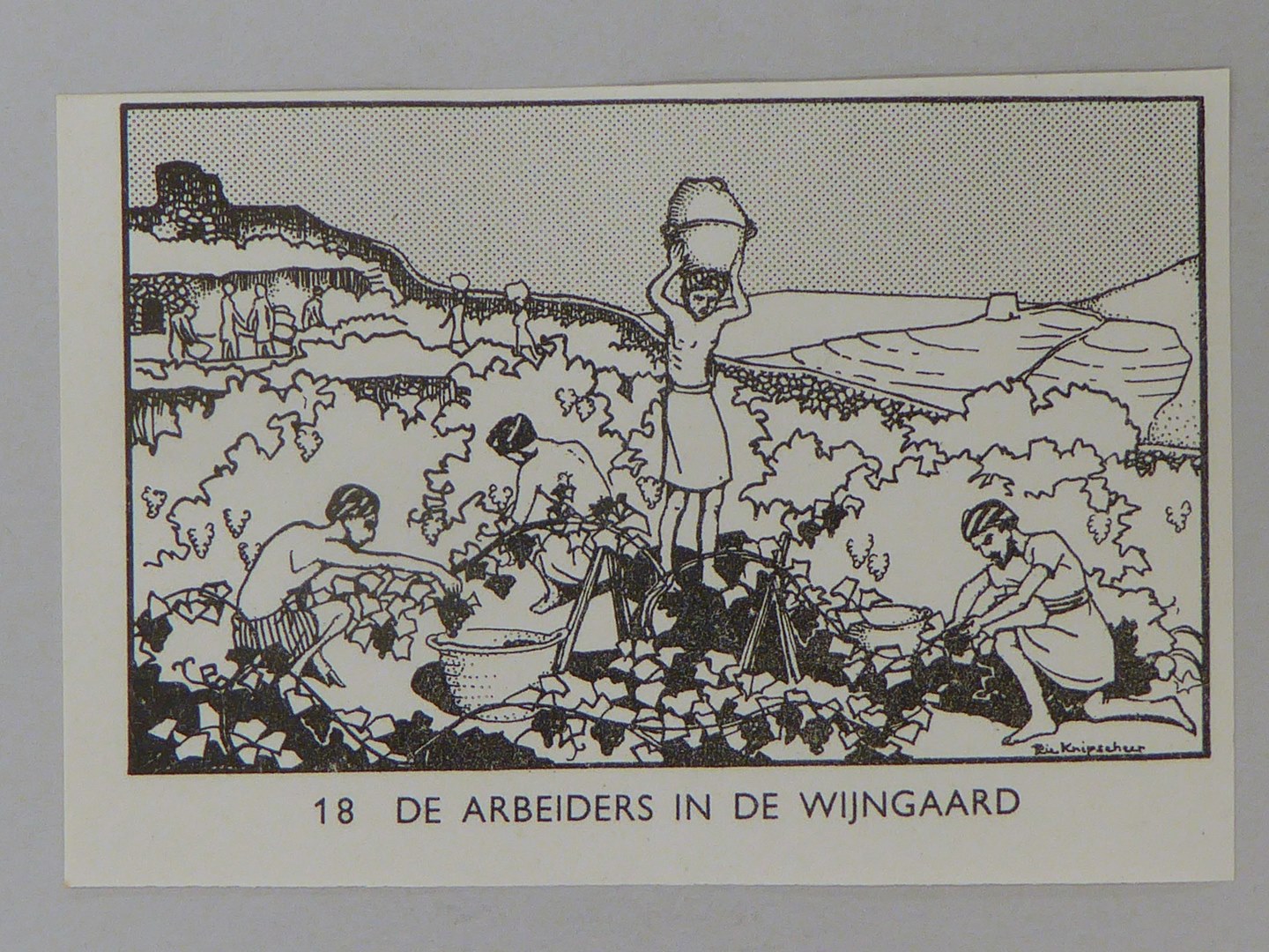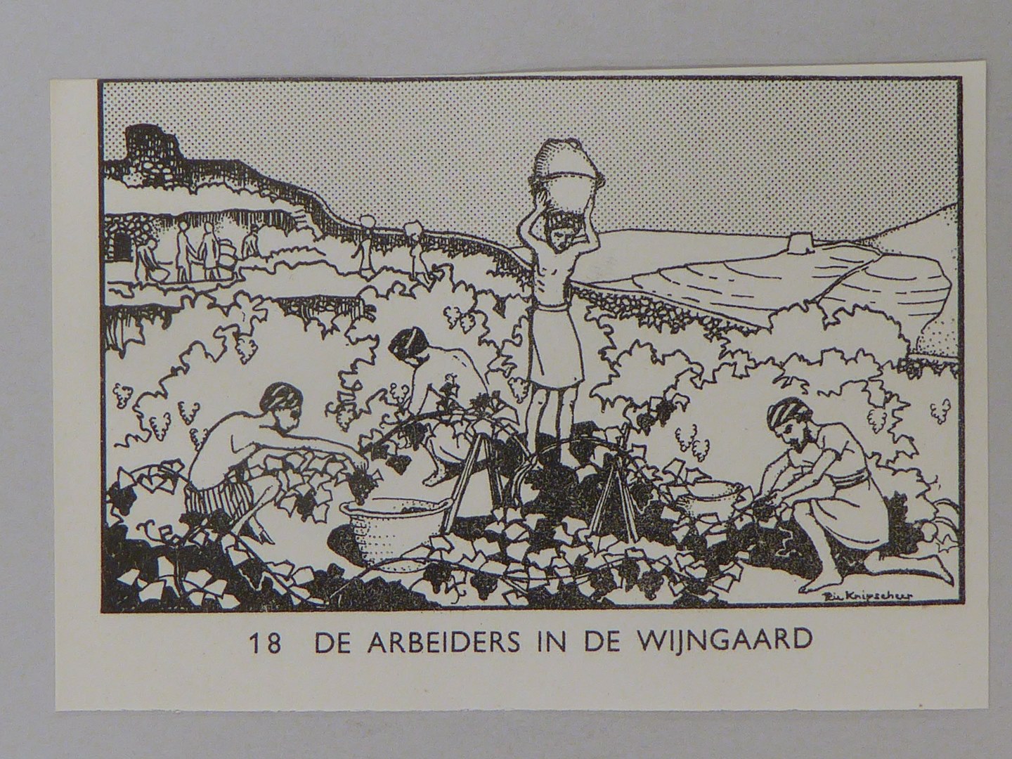 Bijbelplaatje met tekst: No. 18 De arbeiders in de wijngaard (40 stuks)