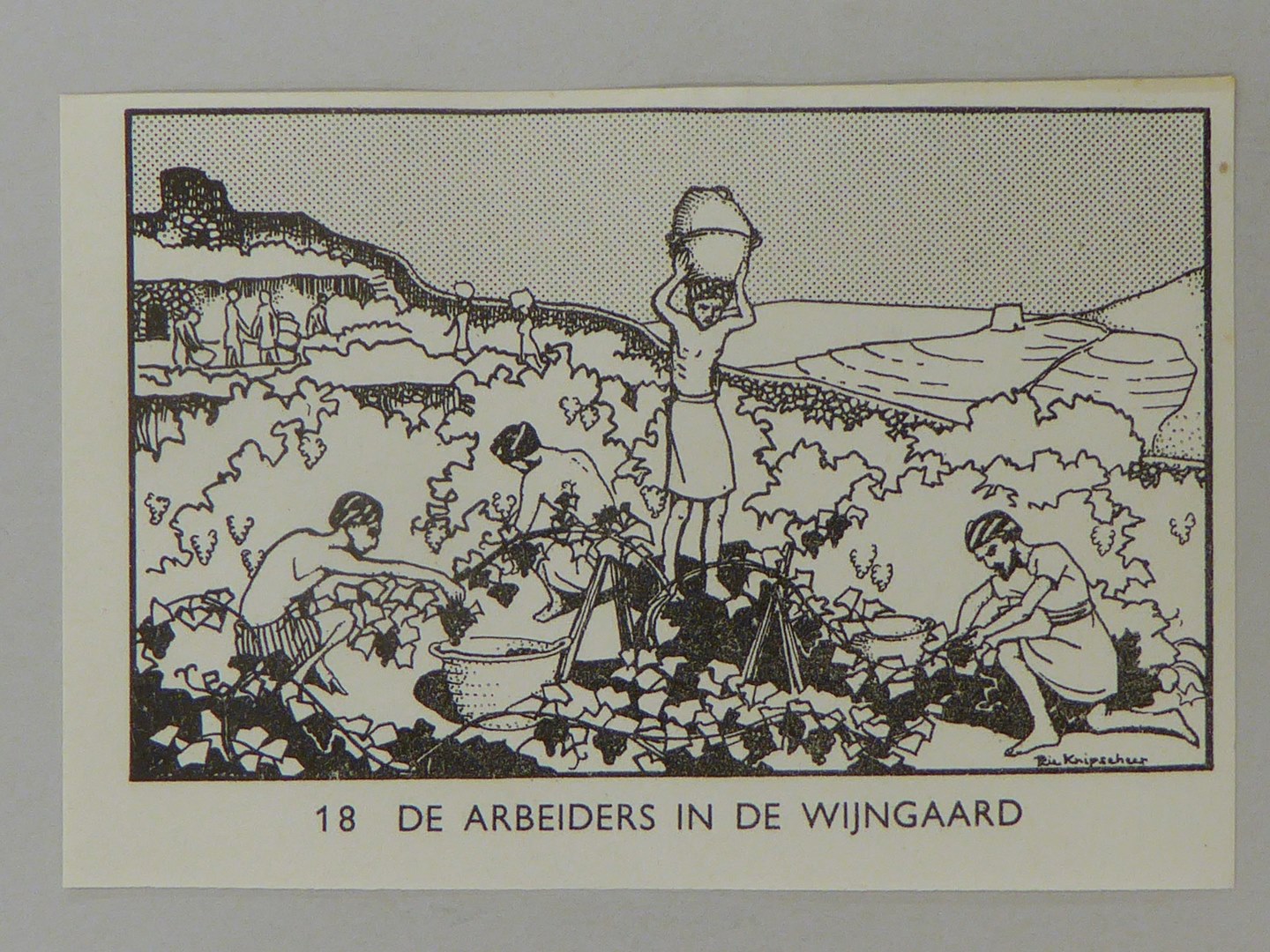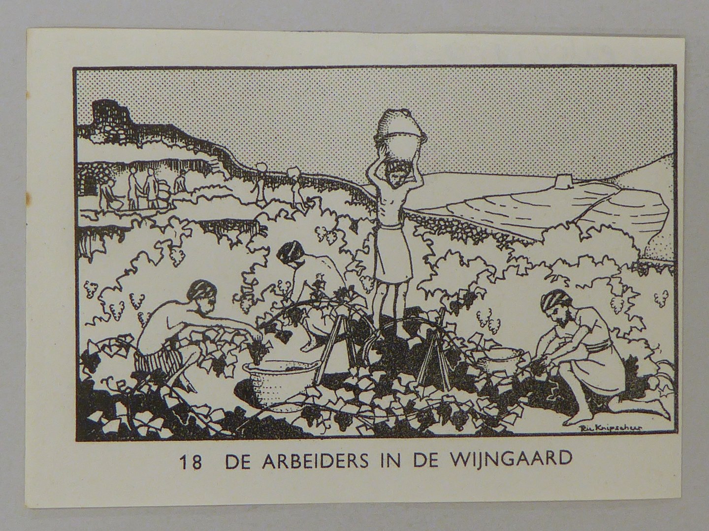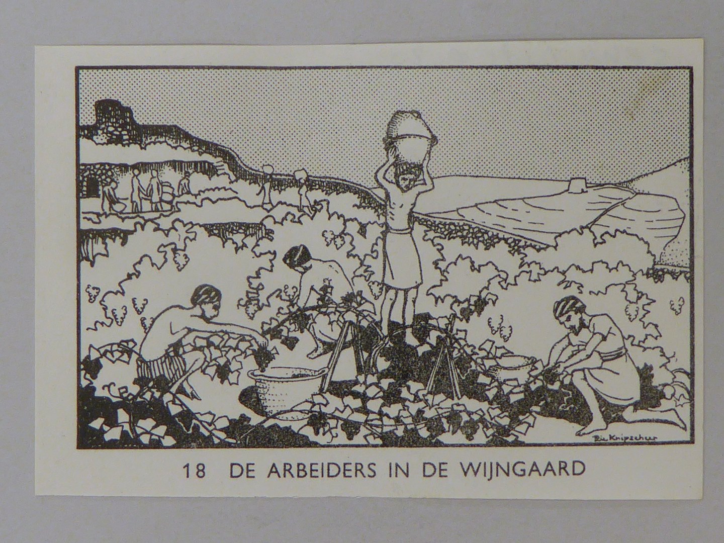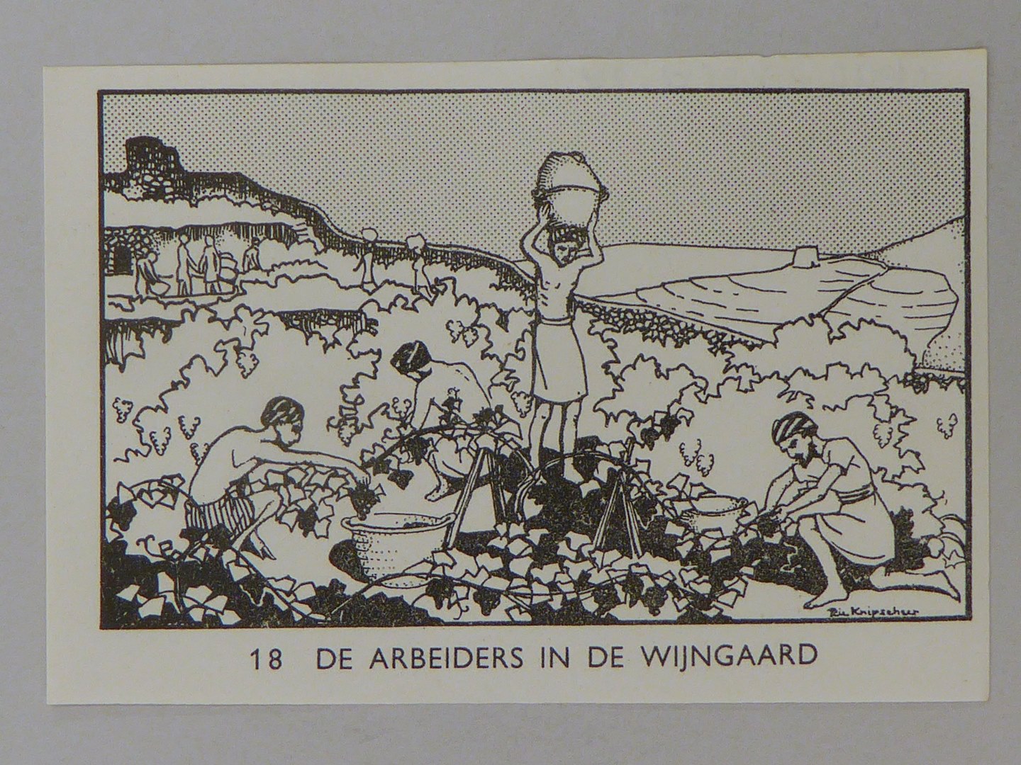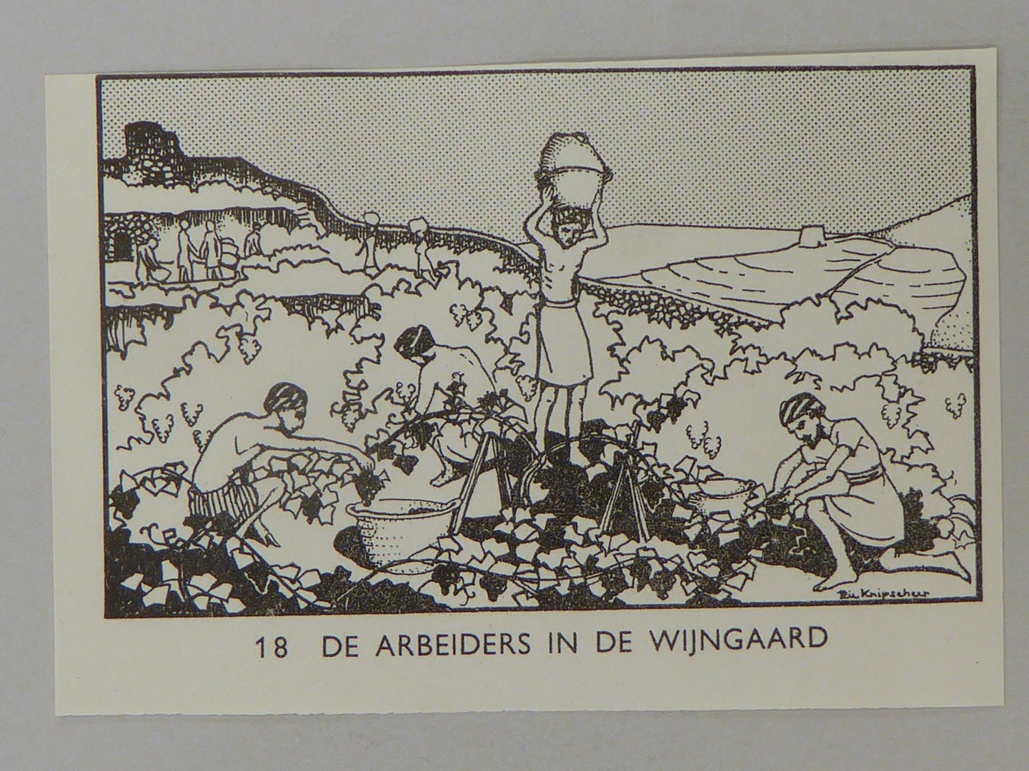 Bijbelplaatje met tekst: No. 18 De arbeiders in de wijngaard (40 stuks)