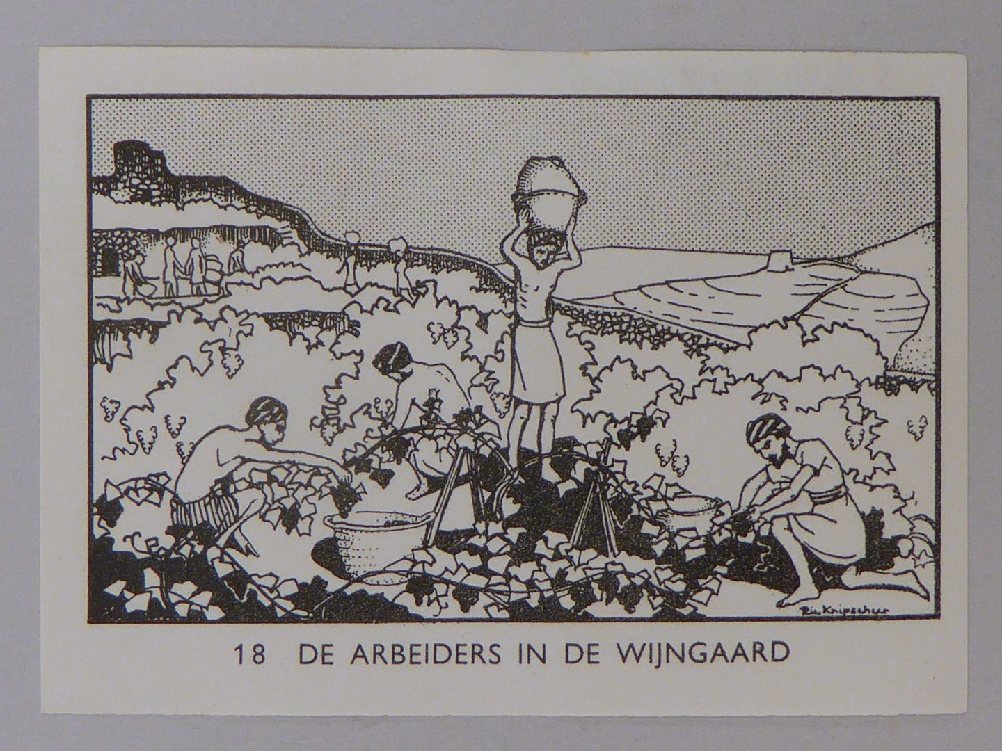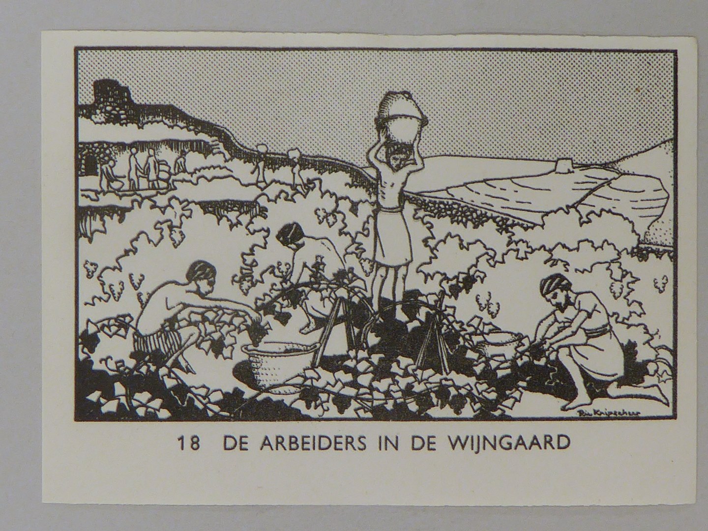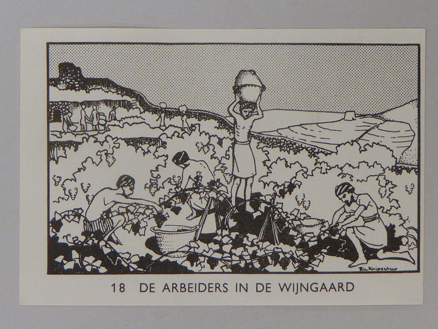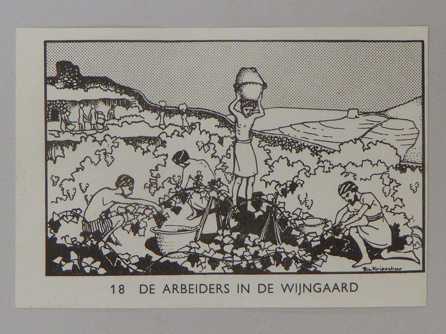 Bijbelplaatje met tekst: No. 18 De arbeiders in de wijngaard (40 stuks)