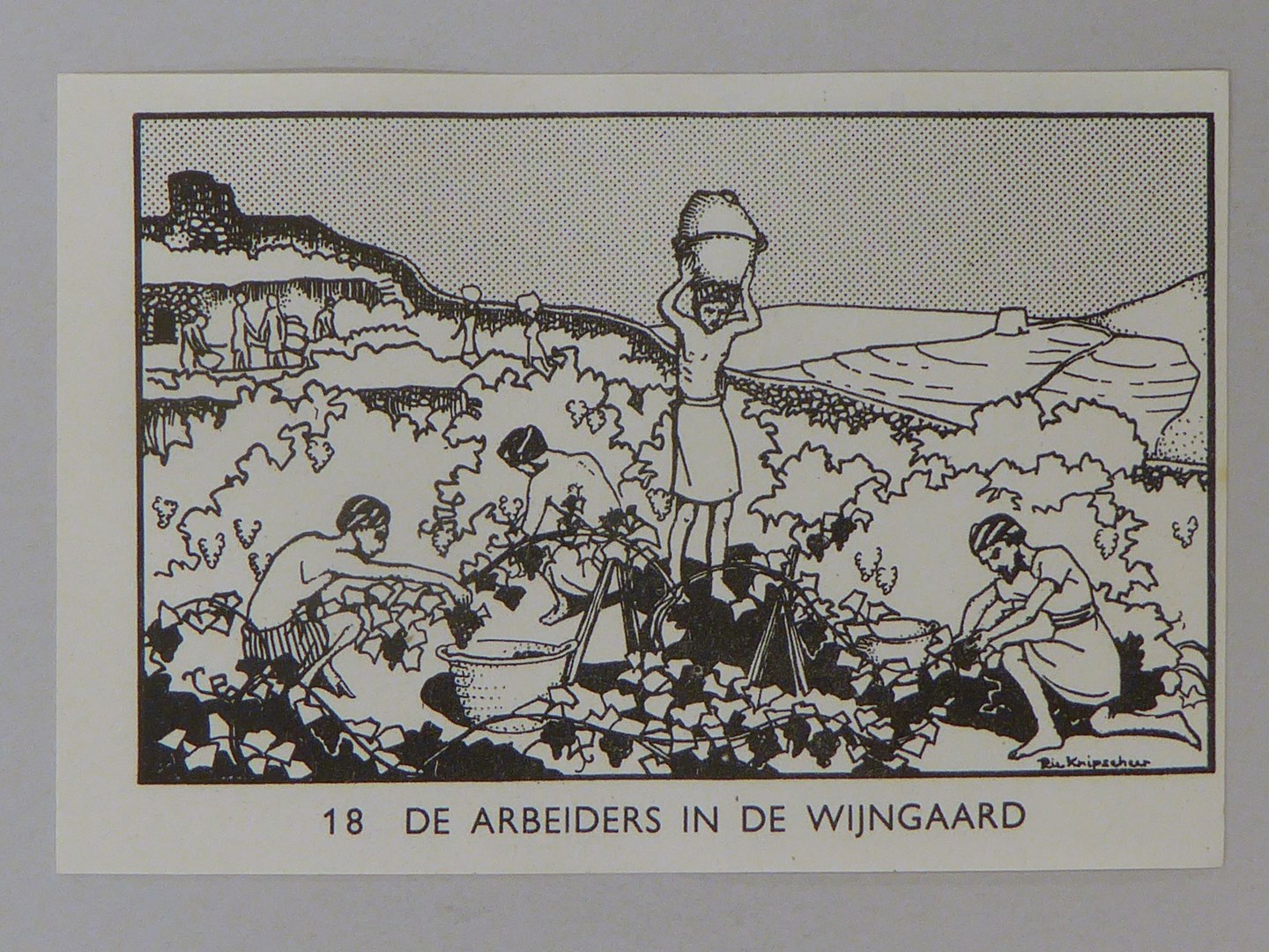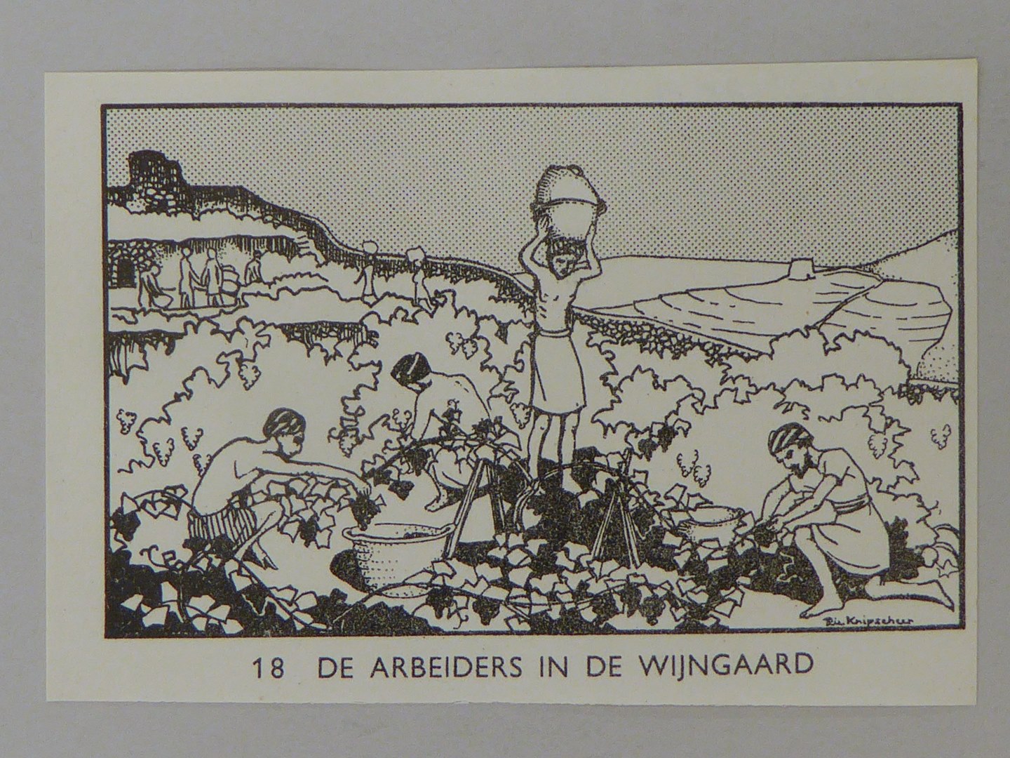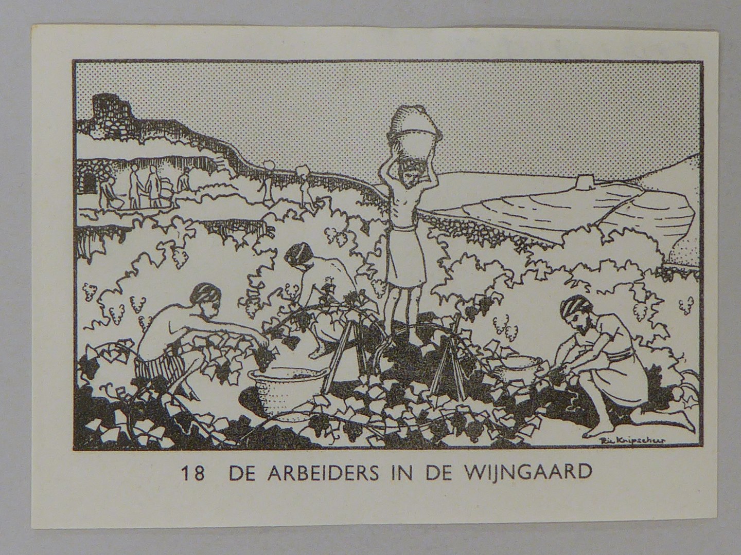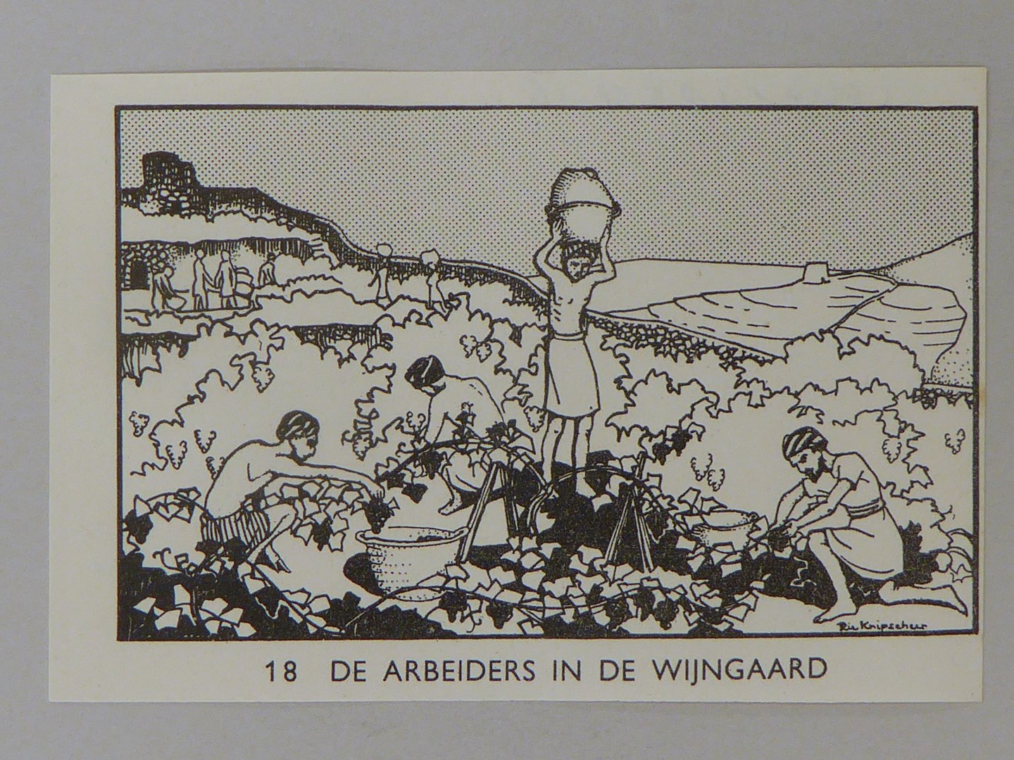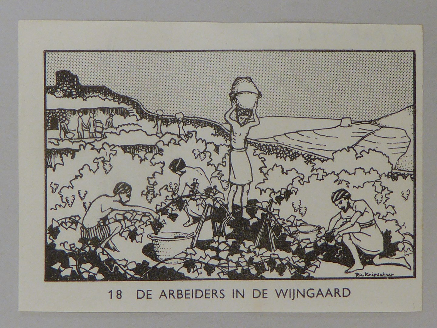 Bijbelplaatje met tekst: No. 18 De arbeiders in de wijngaard (40 stuks)