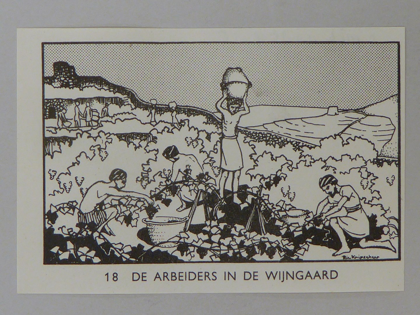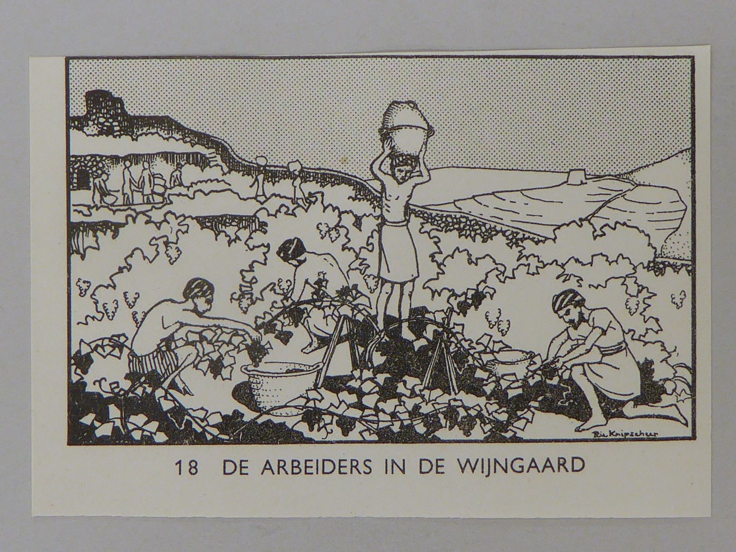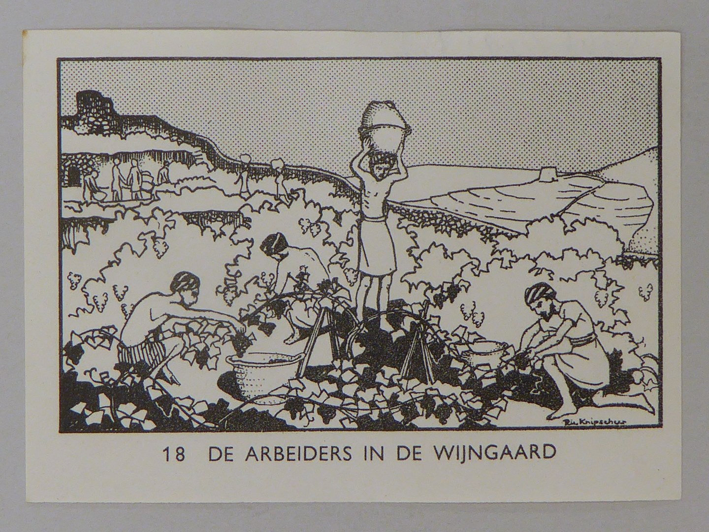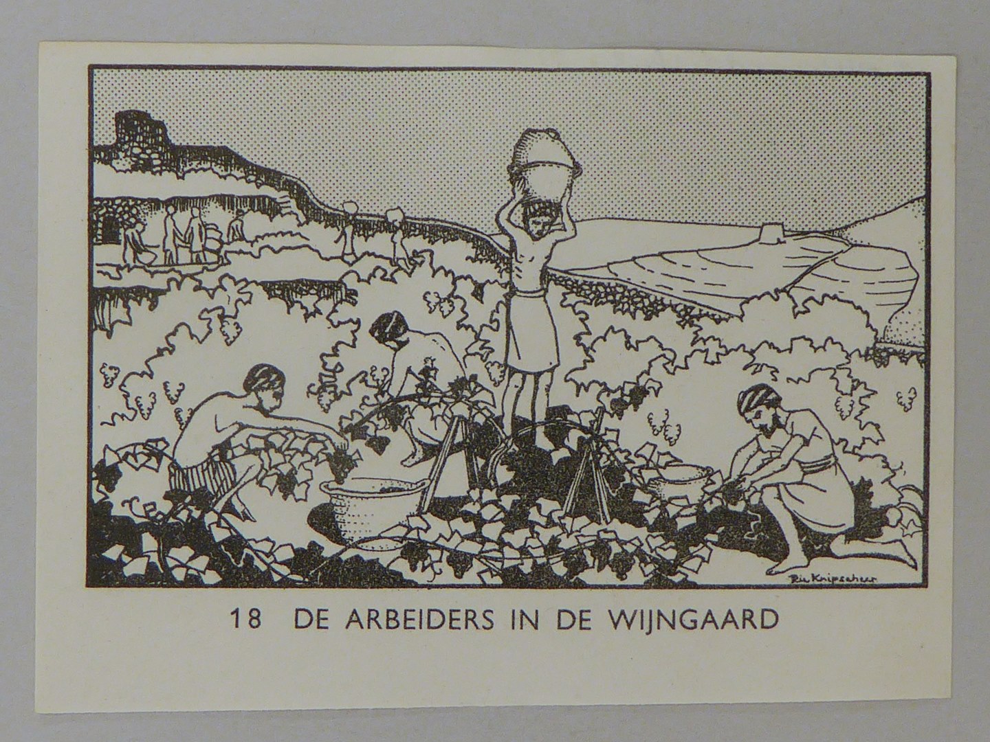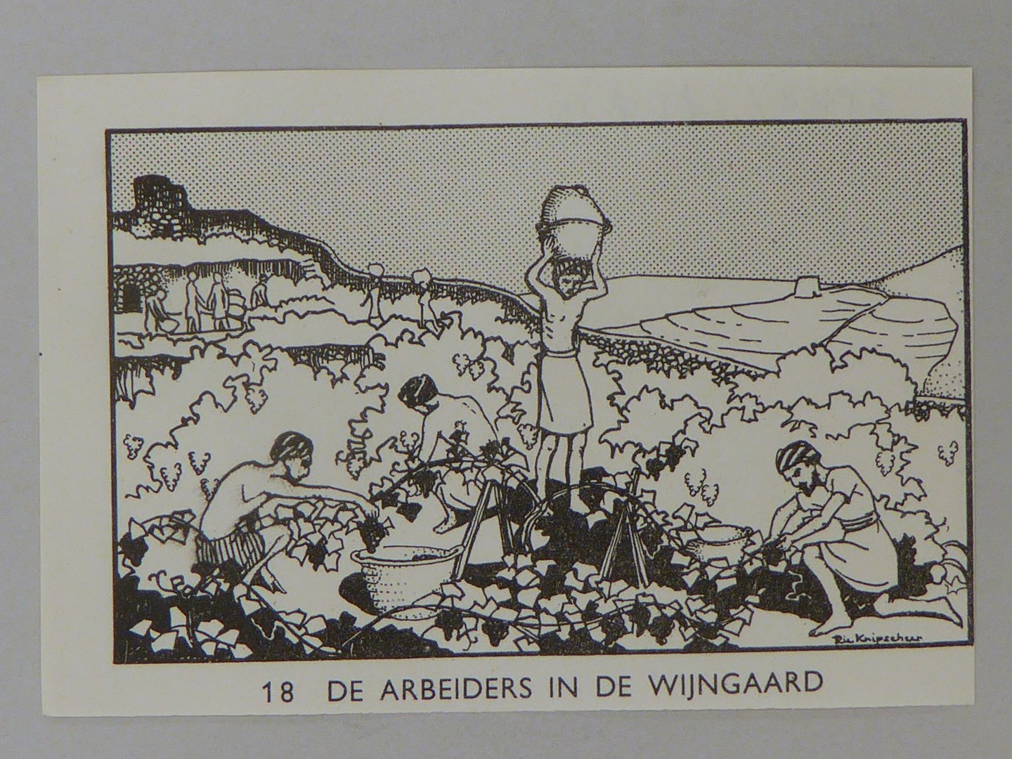Bijbelplaatje met tekst: No. 18 De arbeiders in de wijngaard (40 stuks)
