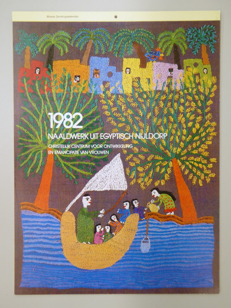 Missie-zendingskalender met naaldwerk uit Egyptisch Nijldorp