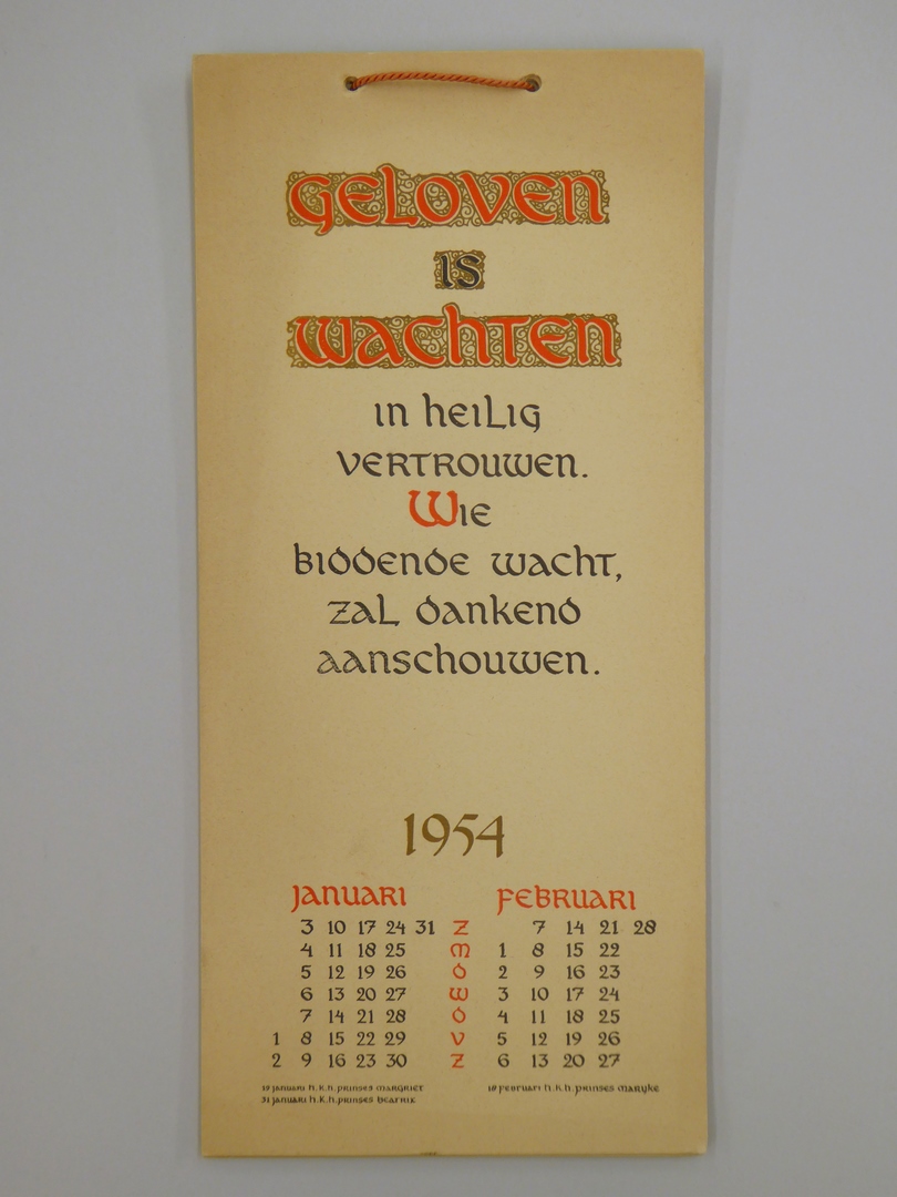 Kalender met gekalligrafeerde teksten uit bijbel of van bekende theologen