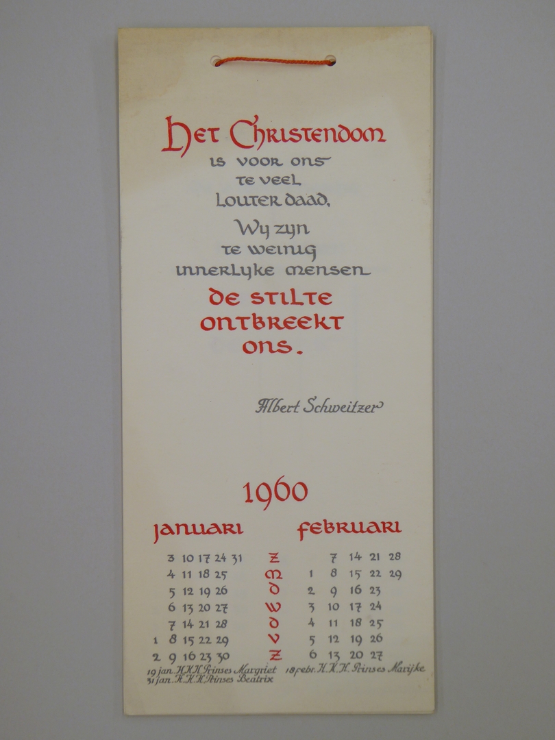 Kalender met gekalligrafeerde teksten uit bijbel of van bekende theologen