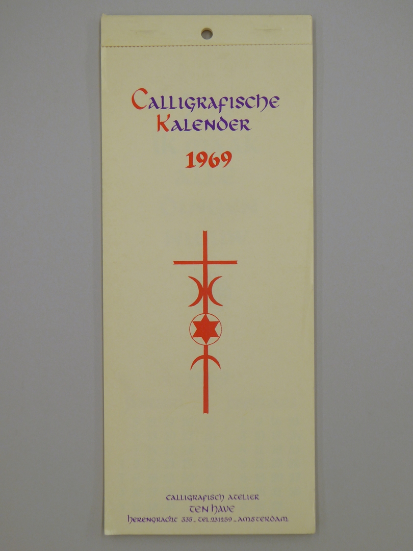 Kalender met gekalligrafeerde teksten uit bijbel of van bekende theologen
