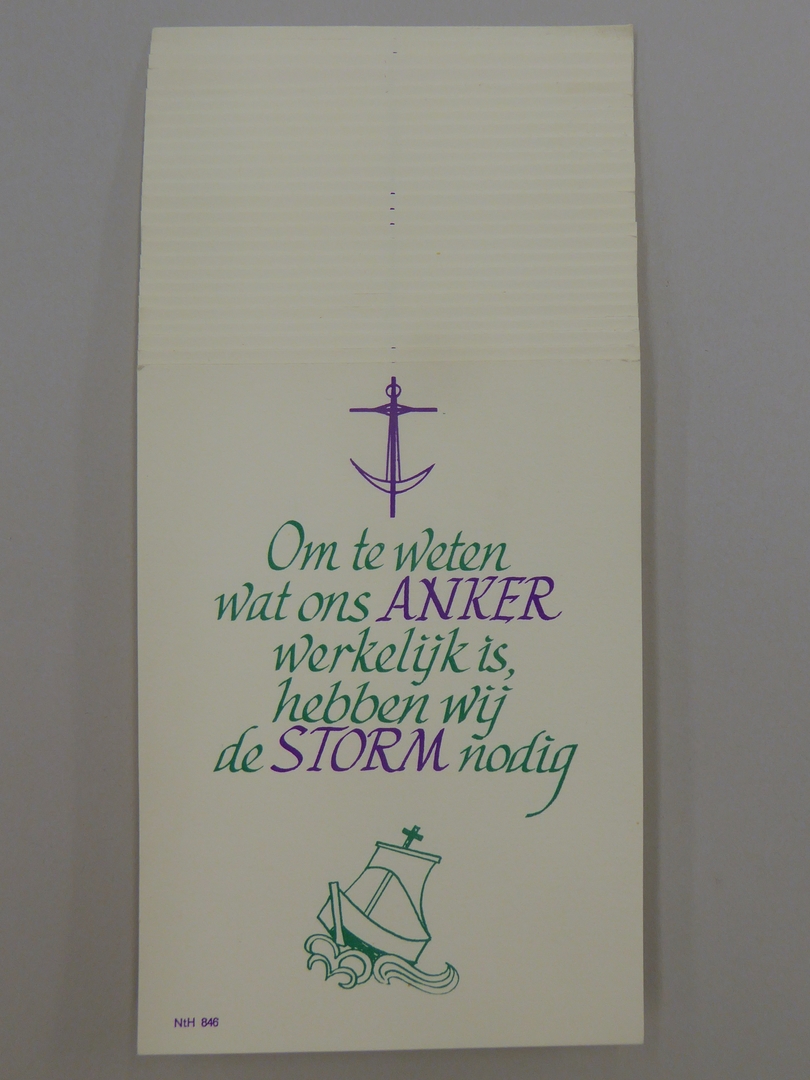 Kaart (25 stuks) met schip en anker met "Om te weten wat ons anker is ..."