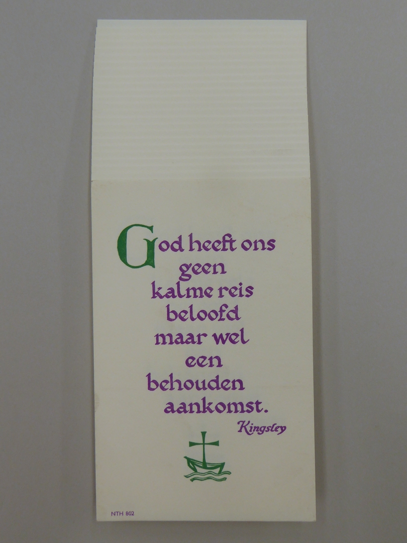 Kaart (23 stuks) met "God heeft ons geen kalme reis beloofd ..."