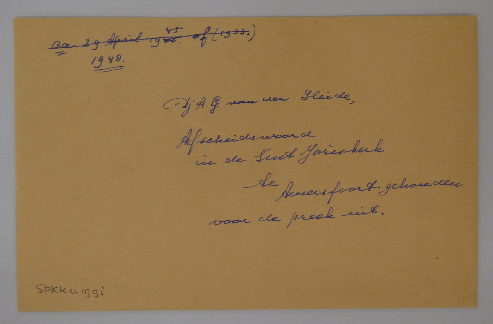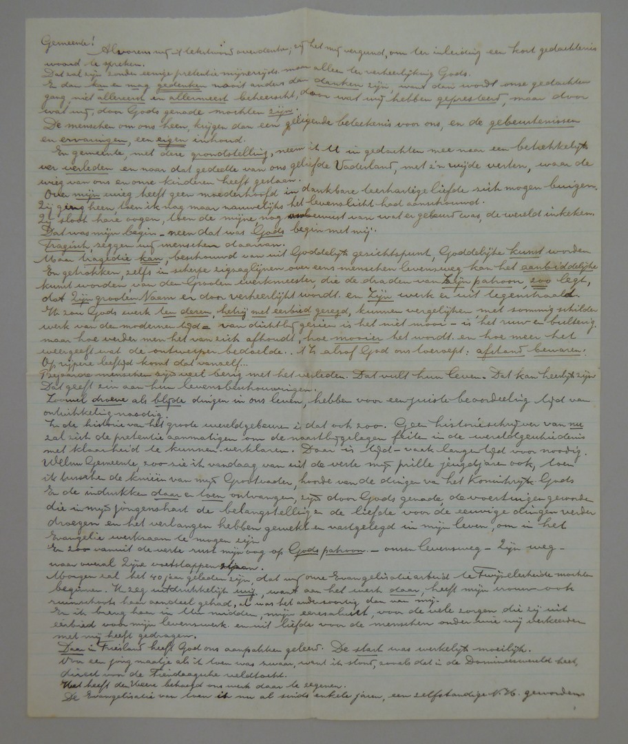 Objecten aangaande Djuurd Anne Geertruid van der Heide (1879-1976): afscheidswoord in St. Joriskerk te Amersfoort