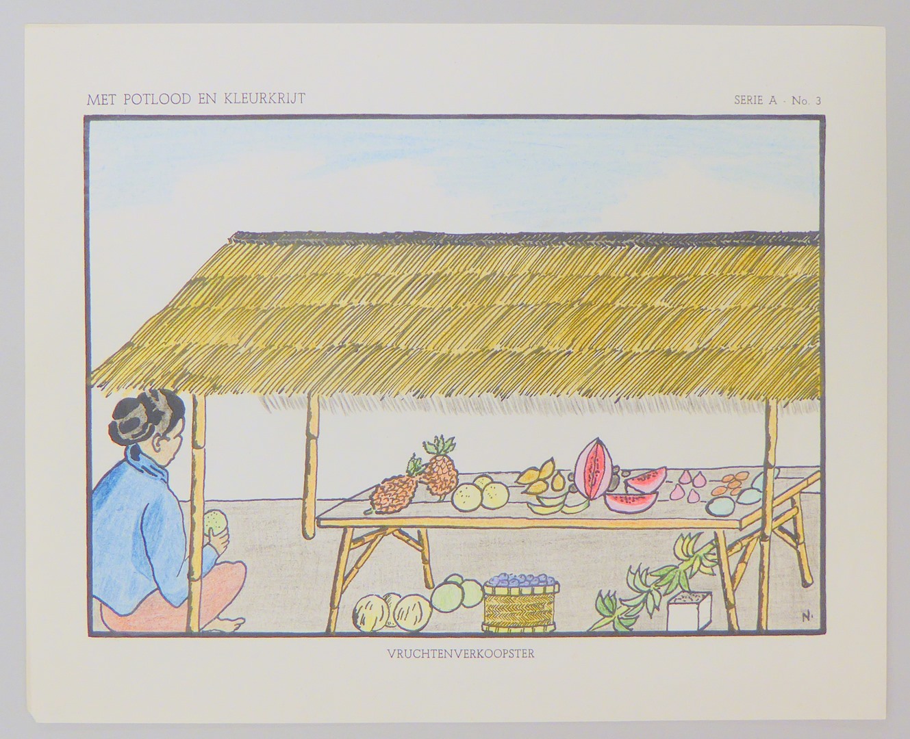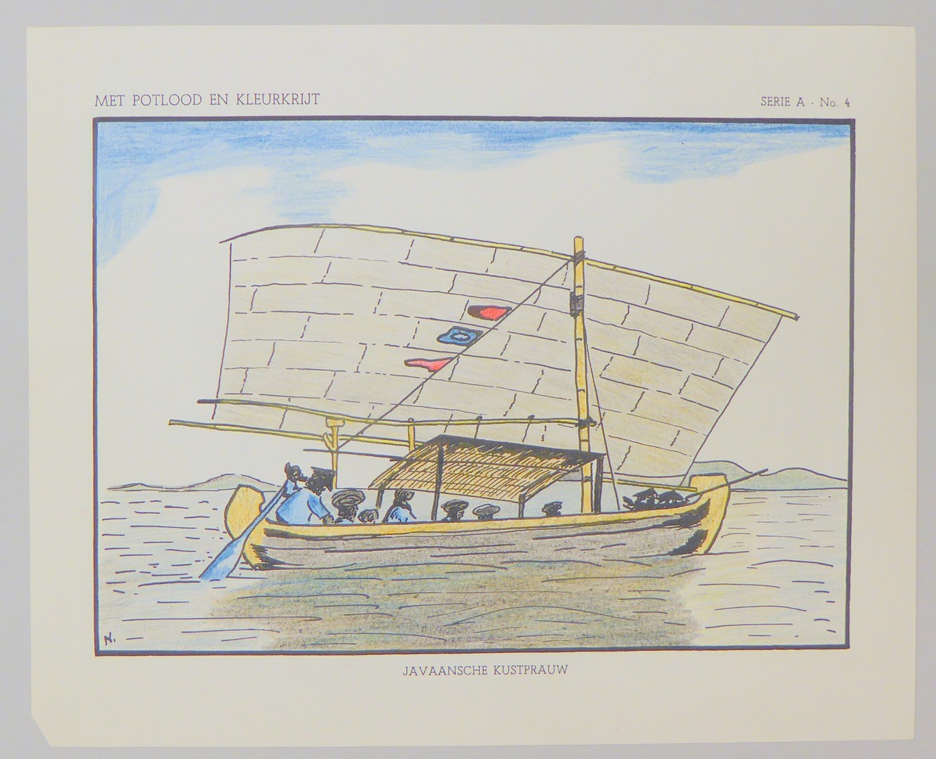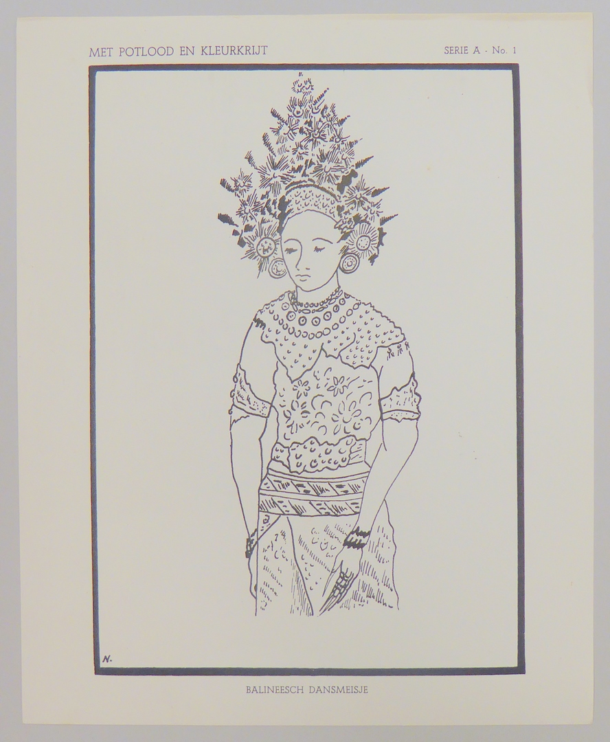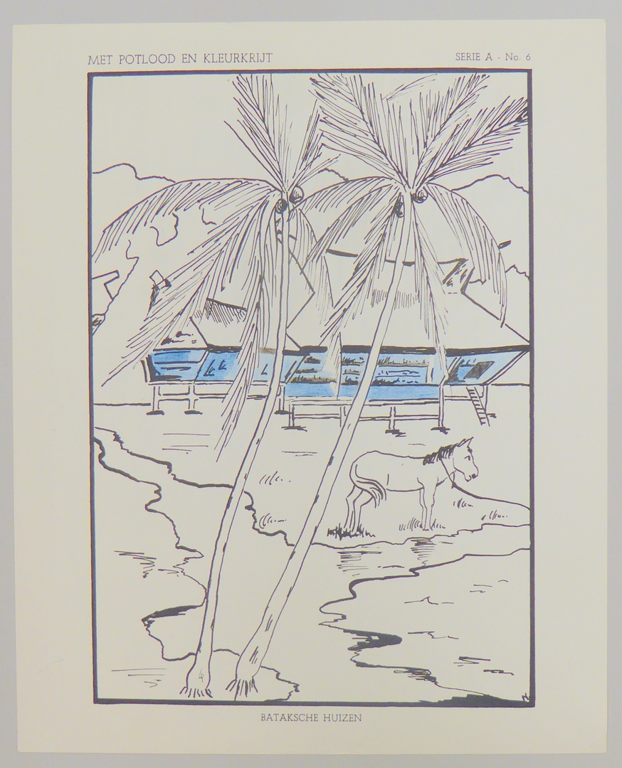 Serie kleurplaten (7 stuks) met "Met potlood en kleurkrijt" voor platenatlas, serie A