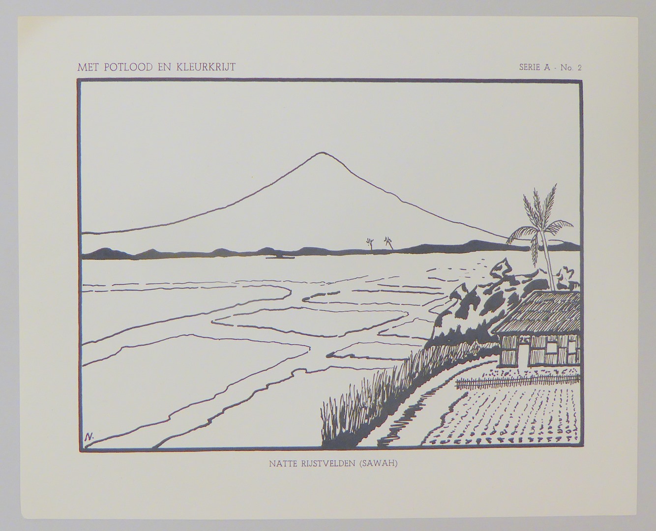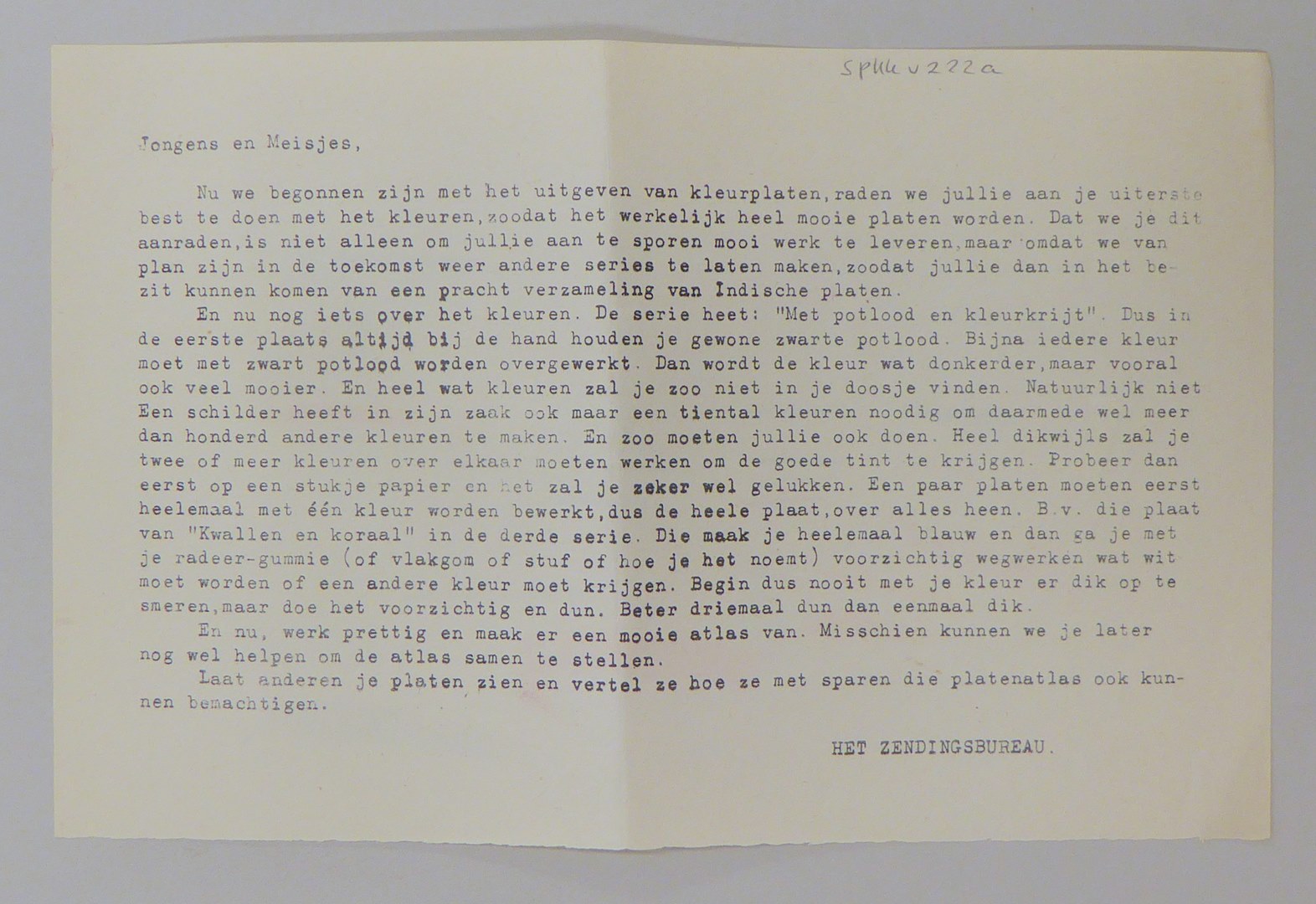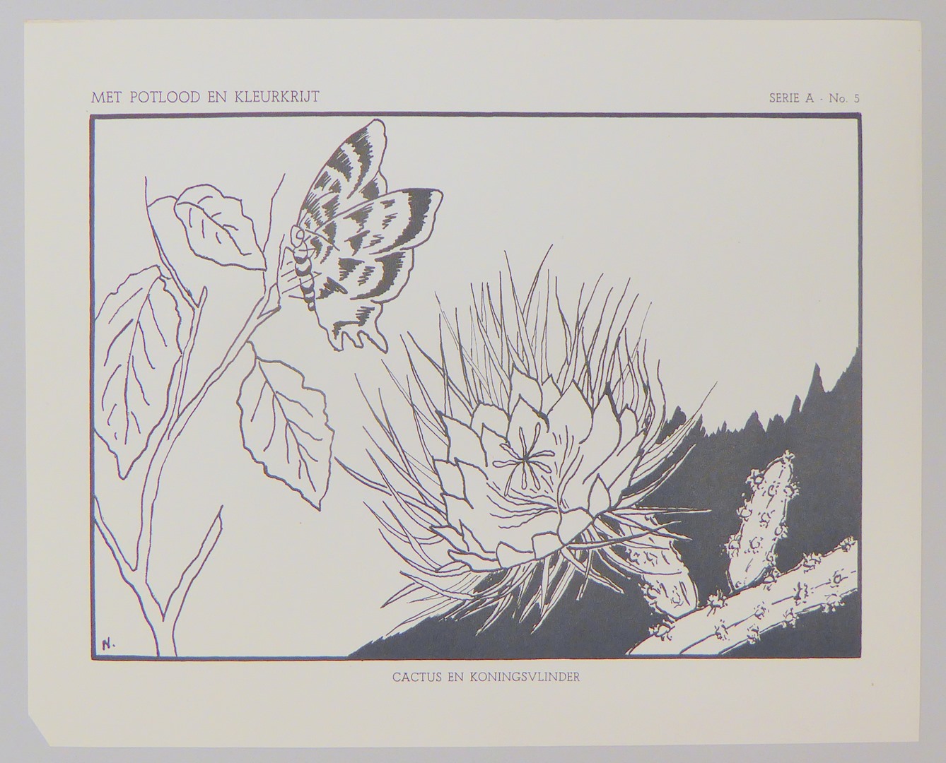 Serie kleurplaten (7 stuks) met "Met potlood en kleurkrijt" voor platenatlas, serie A