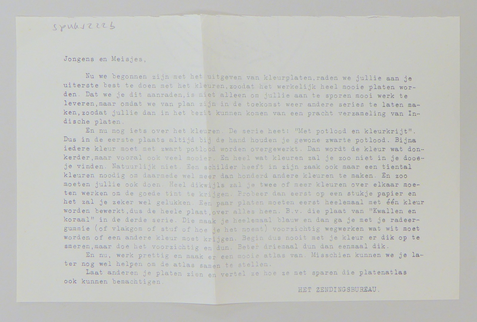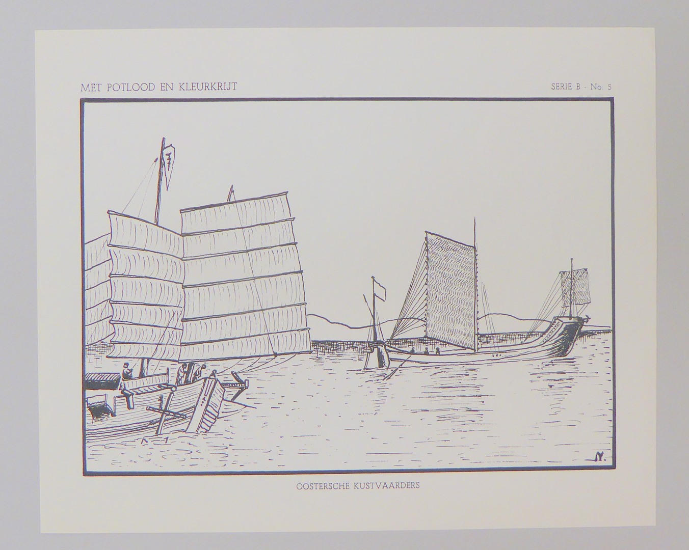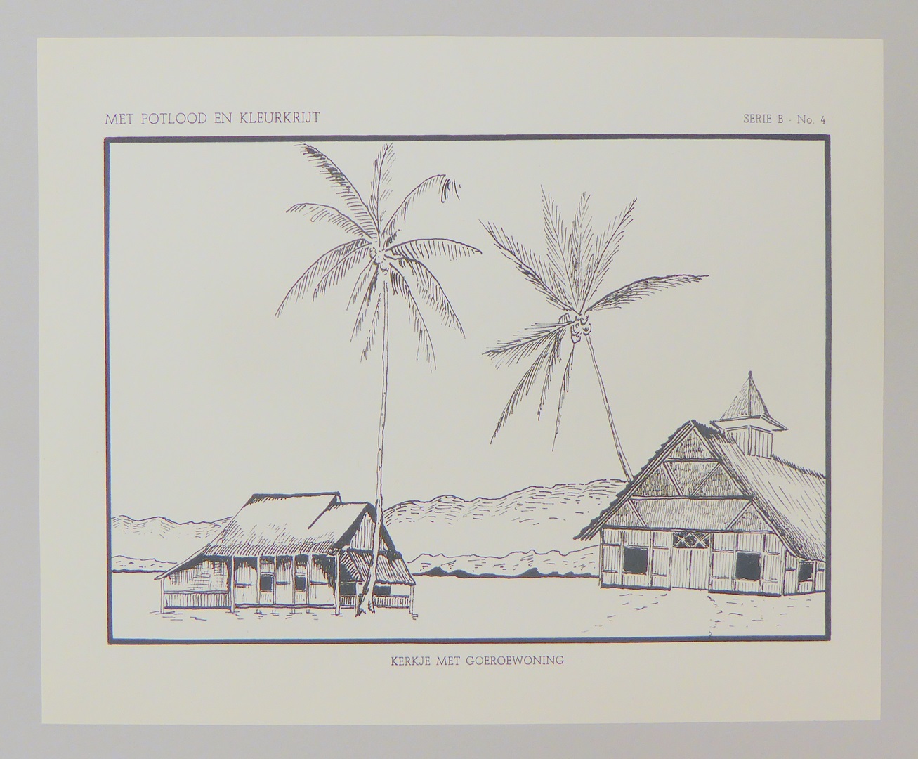 Serie kleurplaten (7 stuks) met "Met potlood en kleurkrijt" voor platenatlas, serie B