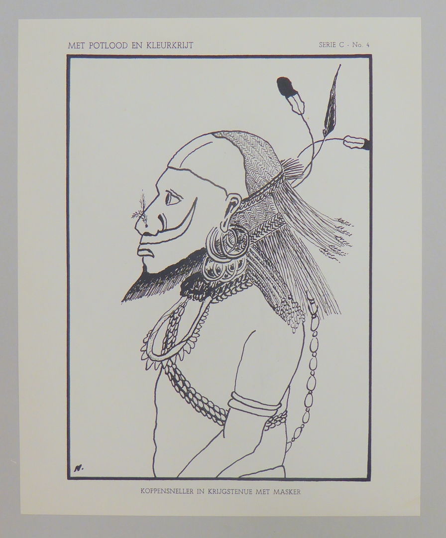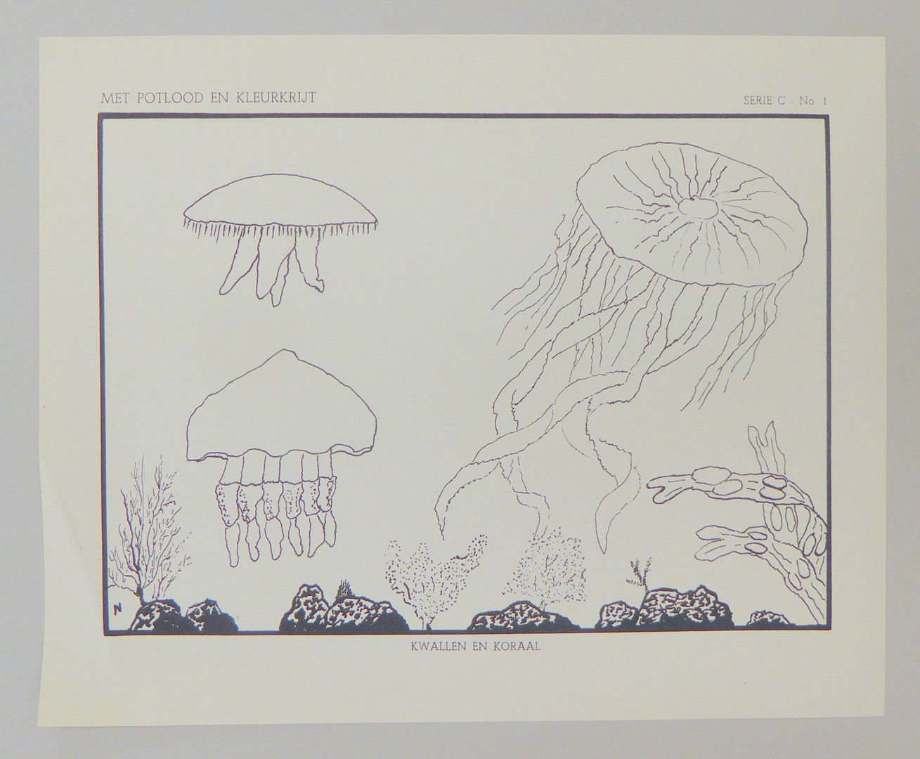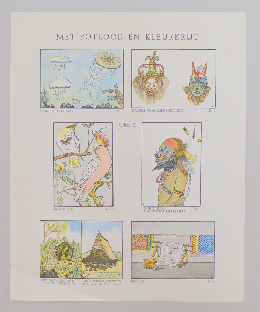 Serie kleurplaten (7 stuks) met "Met potlood en kleurkrijt" voor platenatlas, serie C