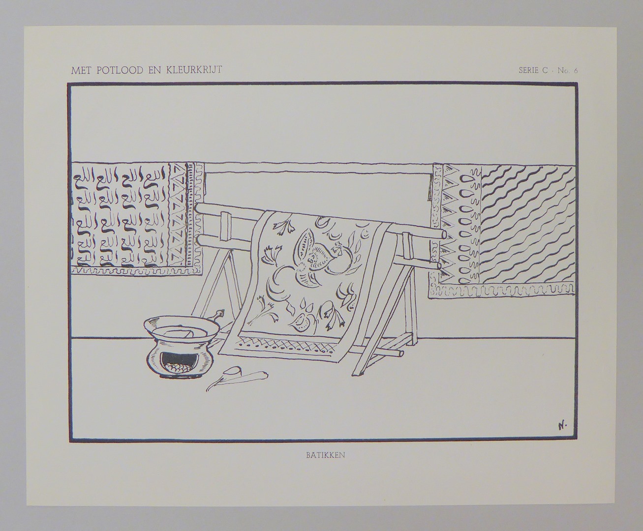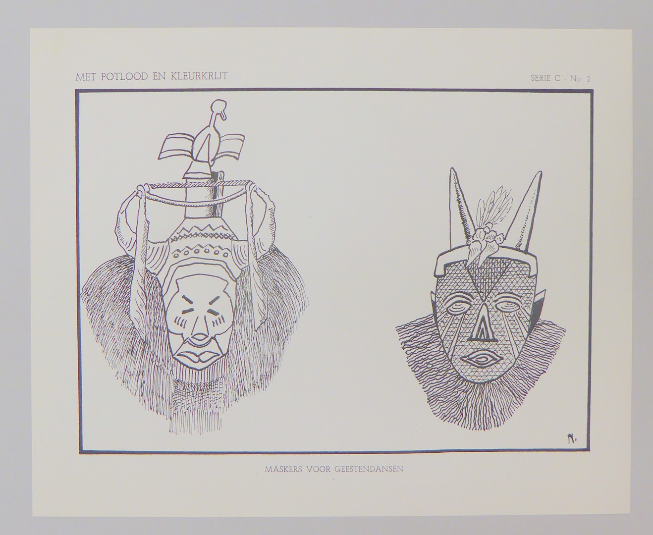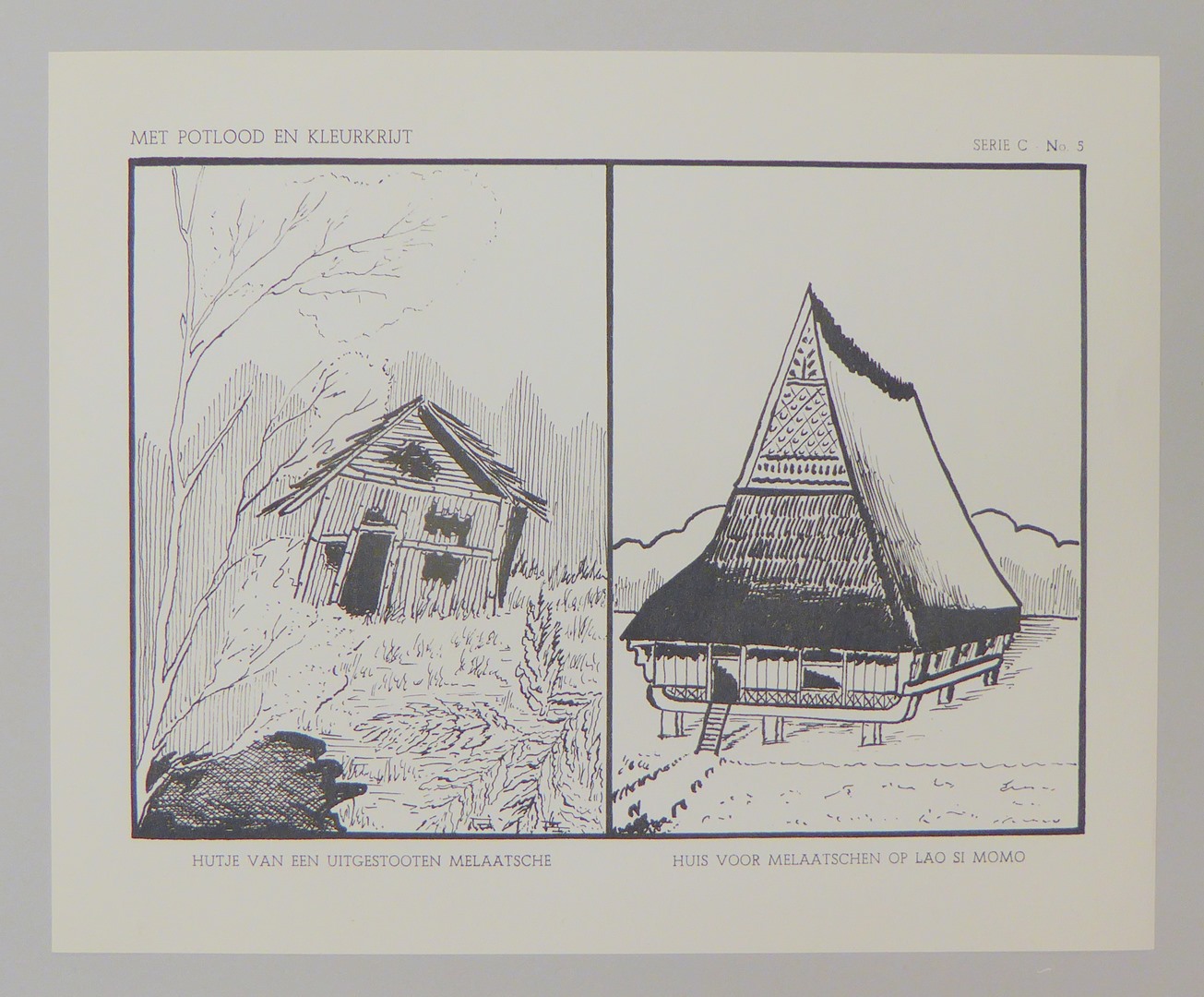 Serie kleurplaten (7 stuks) met "Met potlood en kleurkrijt" voor platenatlas, serie C