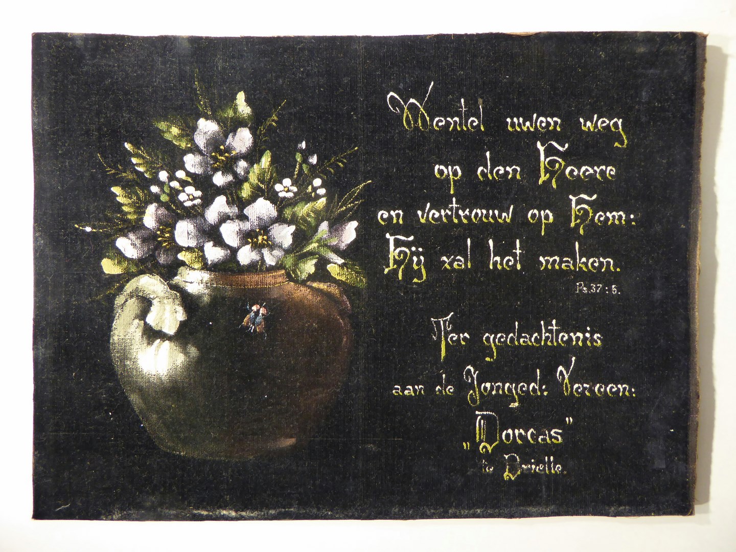 Fluwelen tekstbord met "Wentel uwen weg op den Heere"