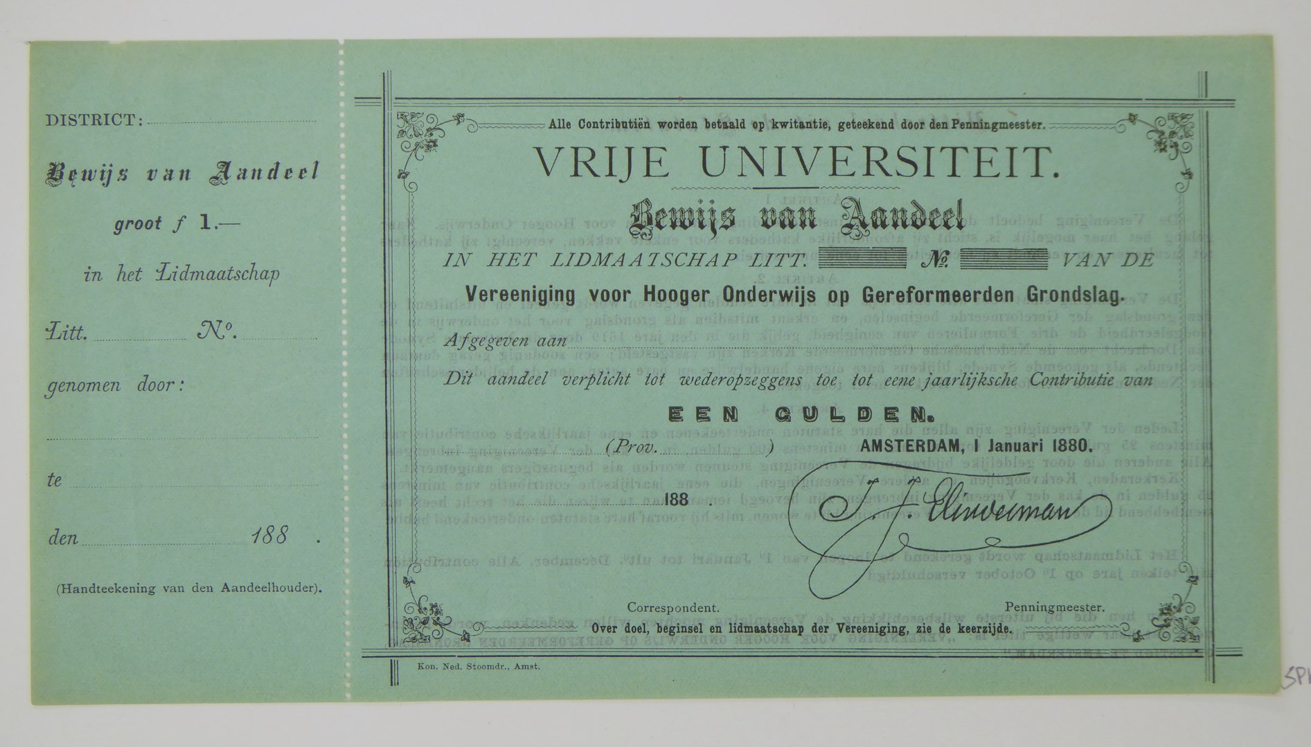 Aandeel, ƒ1, lidmaatschap van de Vereeniging voor Hooger Onderwijs op Gereformeerden Grondslag