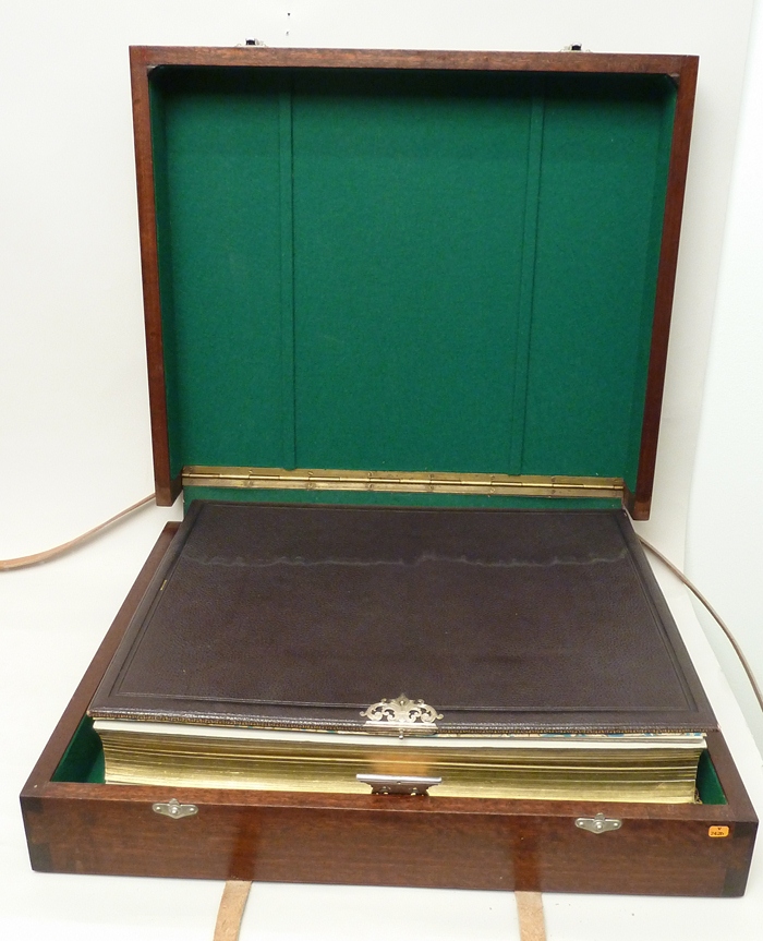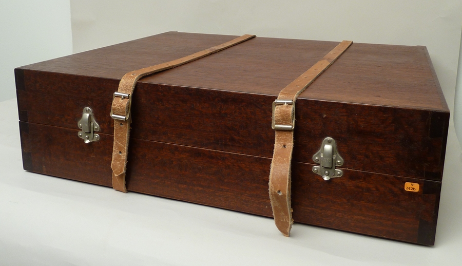 Mahoniehouten kist met leren riemen voor jubileumboek SPKK v242a