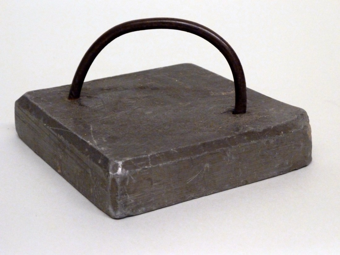 Gereedschap ter voorbereiding avondmaal: loden gewicht met handgreep om avondmaalsbrood te pletten