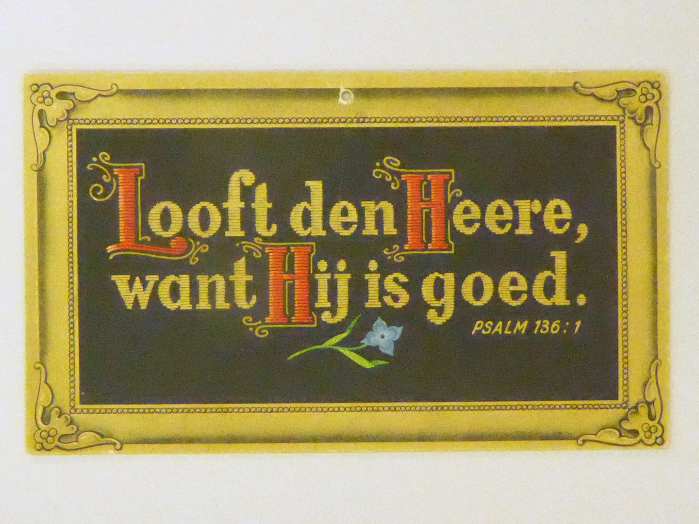 Tekstbord met "Looft den Heere, want Hij is goed" (ps.136:1)