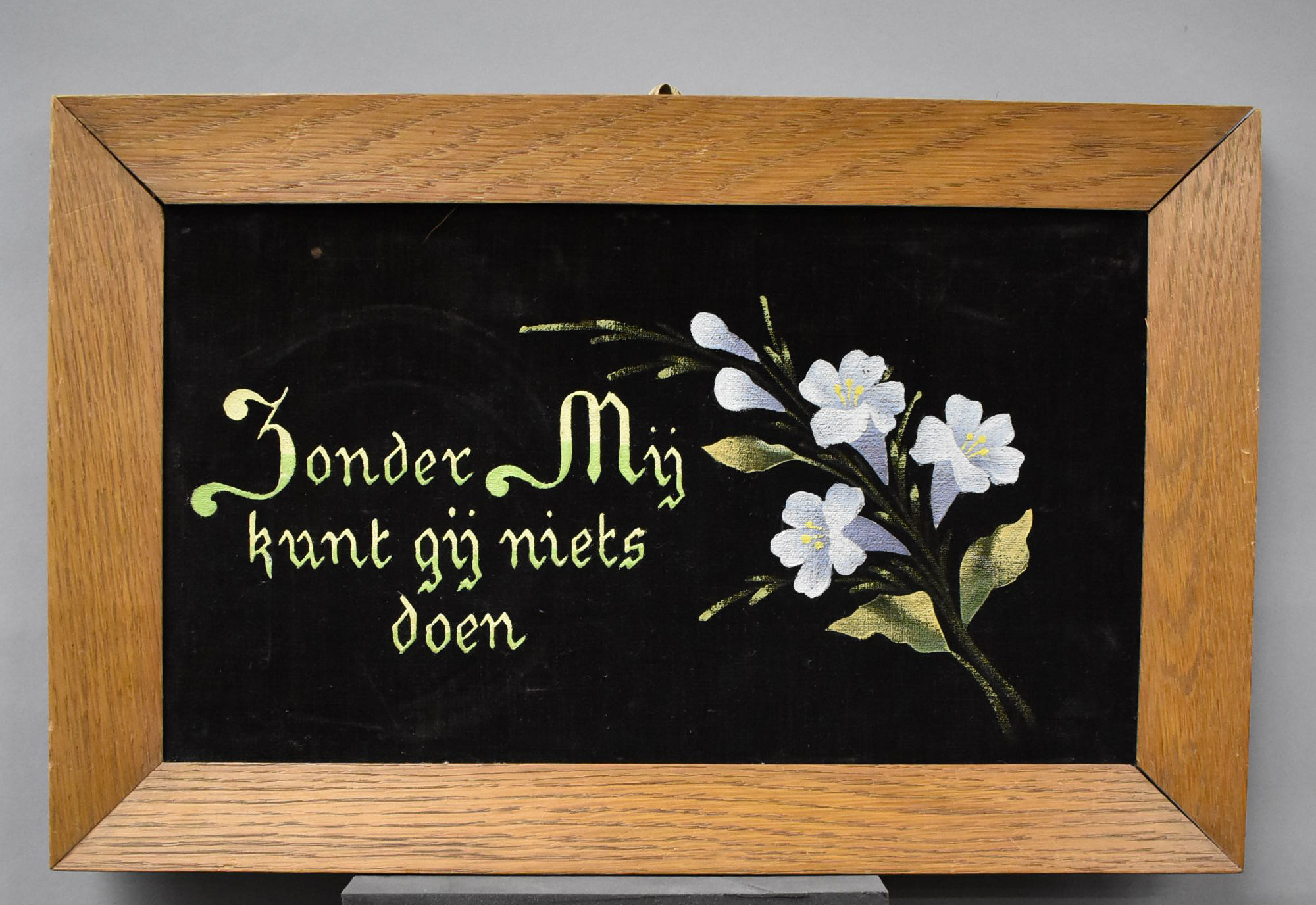 Wandbord met "Zonder mij kunt gij niets doen" en bloemen