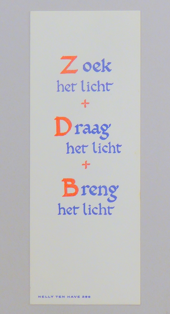 Bladwijzer met "Zoek het licht + Draag het licht + Breng het licht"