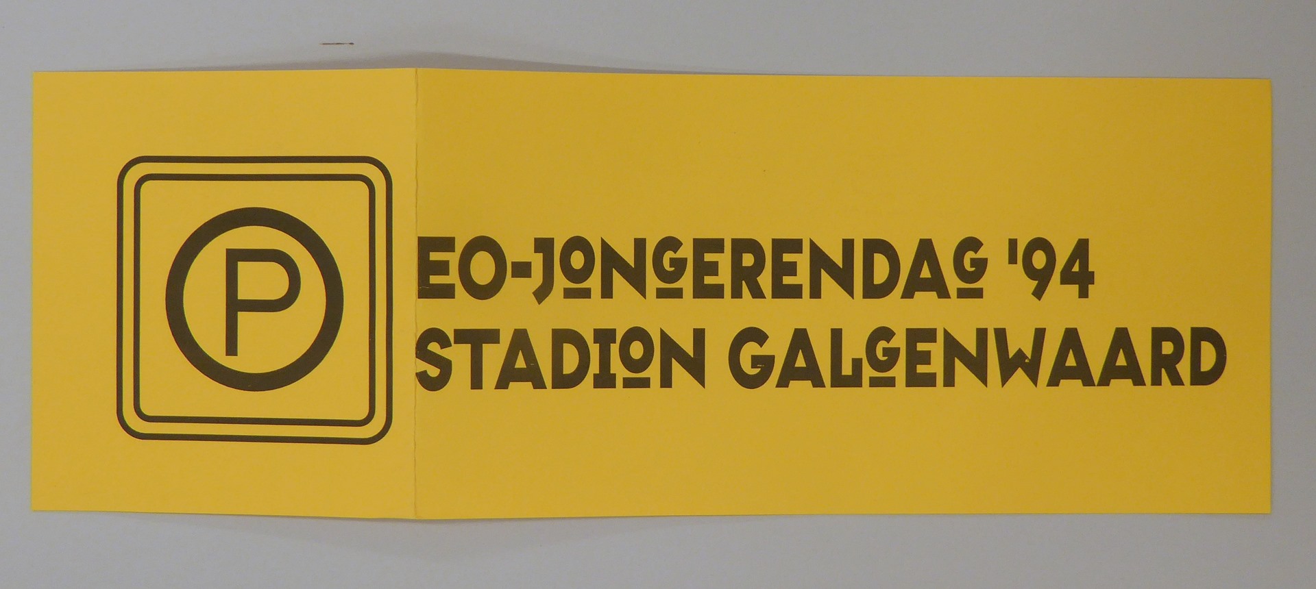 Oranje parkeerkaart met "EO-jongerendag '94 Stadion Galgenwaard"