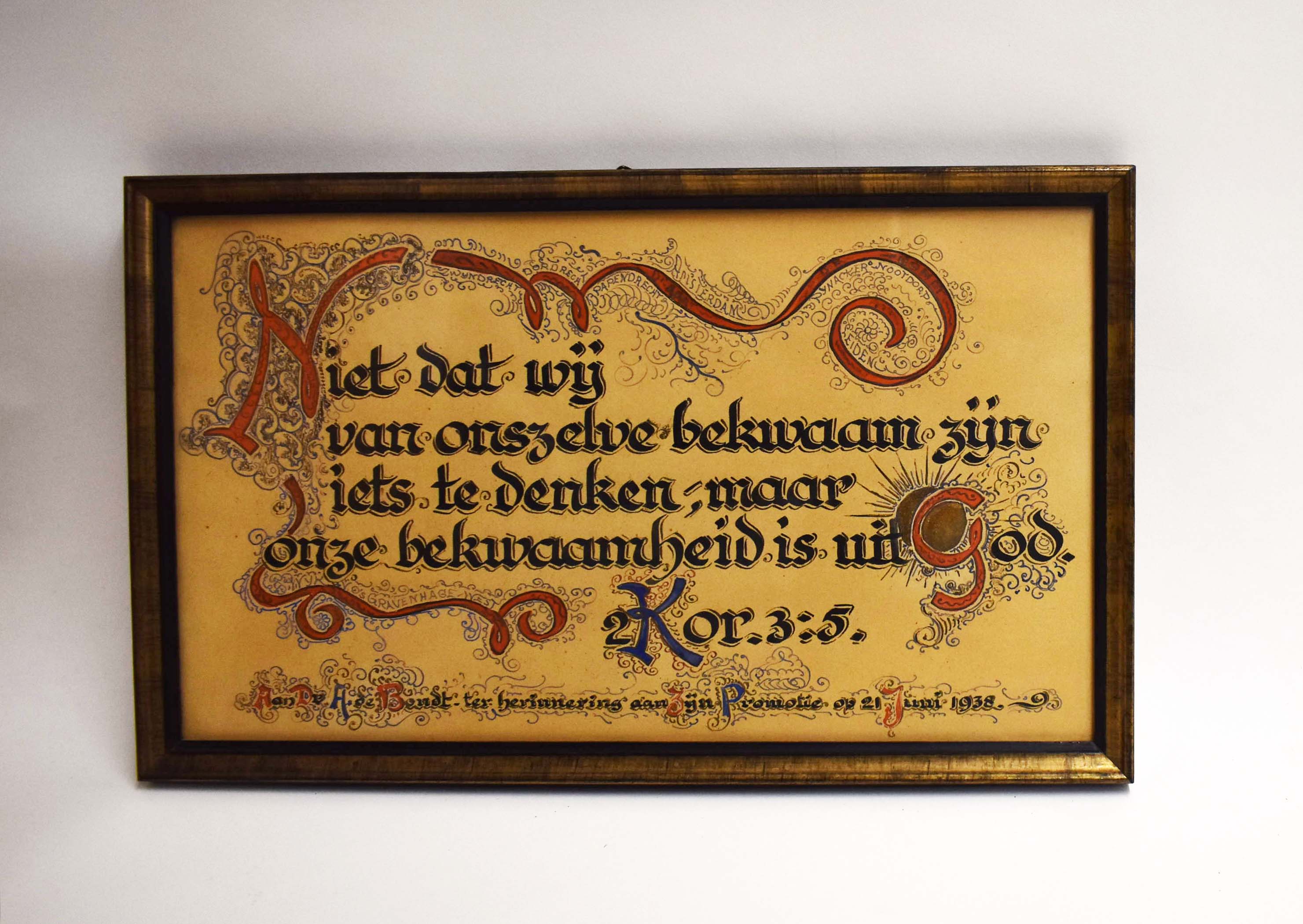 Tekstbord t.g.v. promotie ds. H. de Bondt met "Niet dat wij ... bekwaam zijn iets te denken ..."
