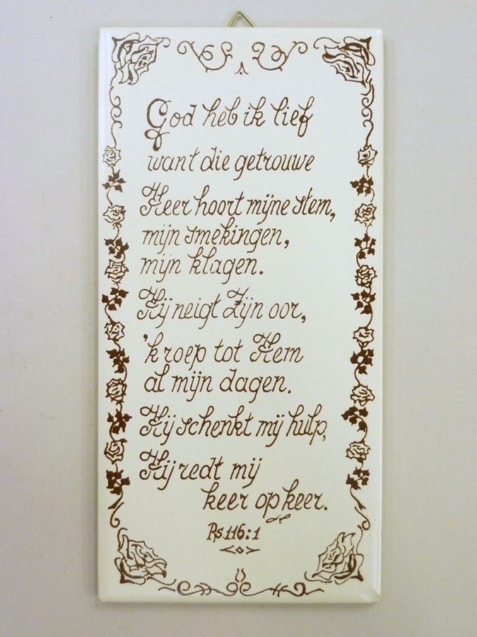 Wandtegel met "God heb ik lief ..." (Ps.116)