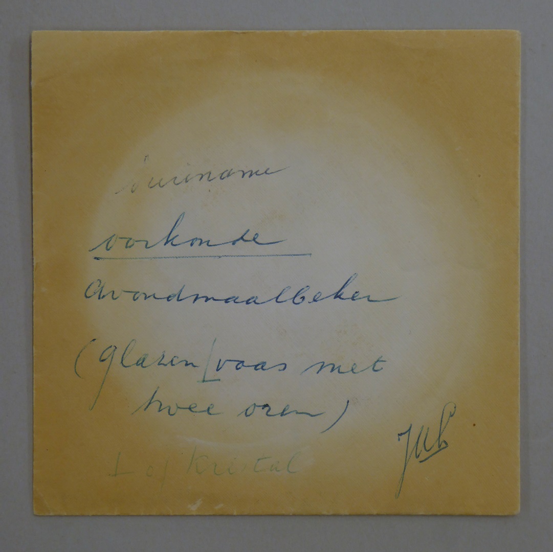 Document behorend bij SPKK v288a met "Avondmaal-Beker d. Gemeente Wanica in gebruik geweest van 1886 tot 1923 ..."