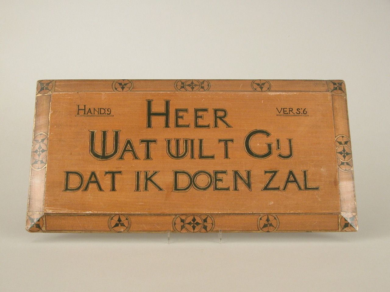 Tekstbord met "Heer Wat wilt Gij dat ik doen zal" (Hand.9:6)