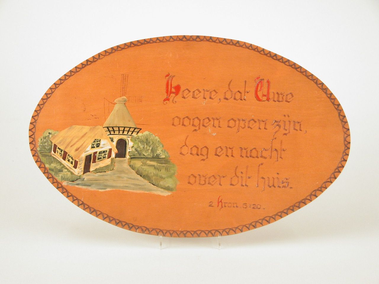 Ovaal tekstbord met "Heere, dat Uwe oogen open zijn, dag en nacht over dit huis. 2 Kron.6:20"