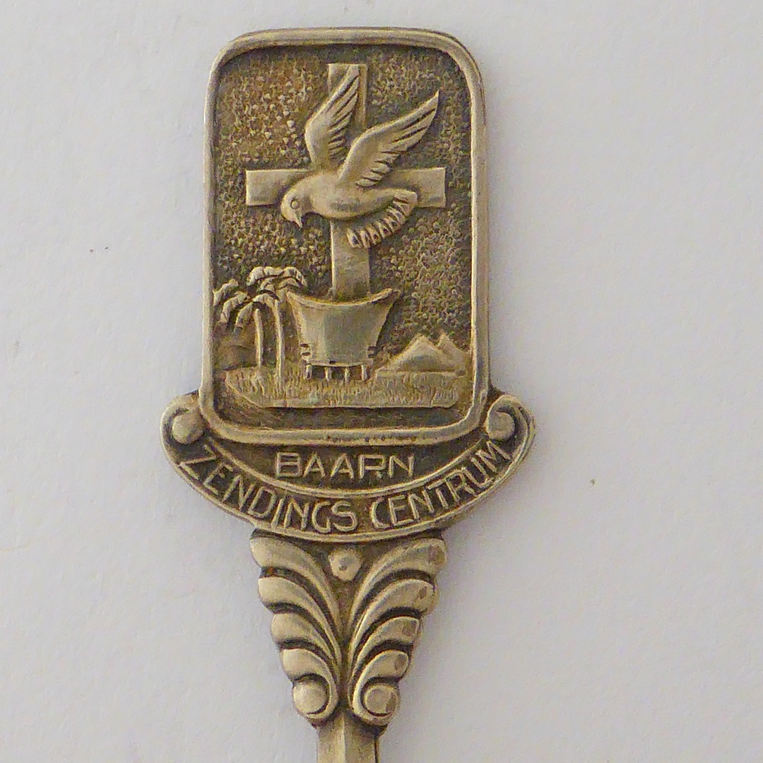 Herinneringslepel m.b.t. een zendings tentoonstelling met "Baarn, Zendings Centrum"