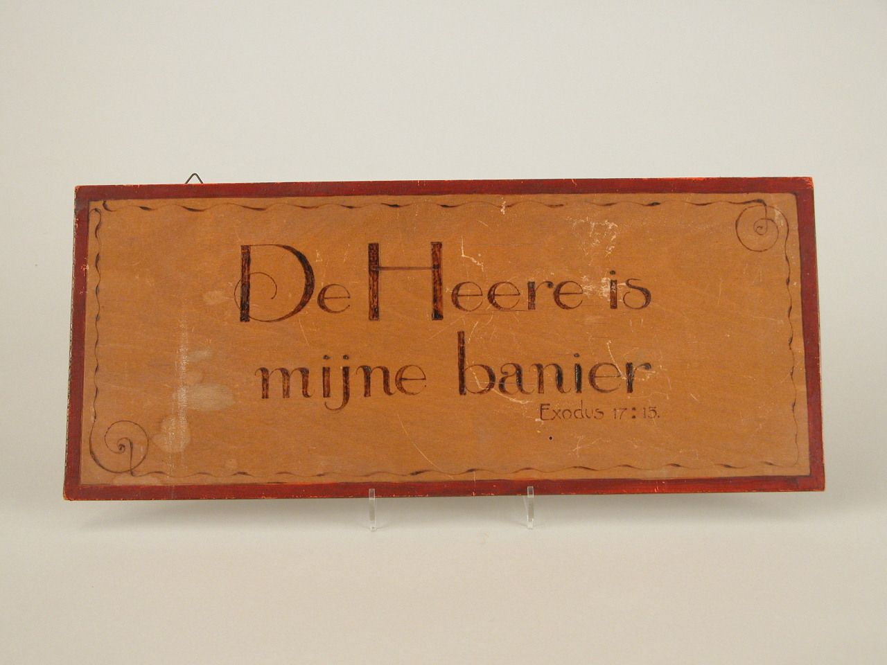 Tekstbord met "De Heere is mijn banier. Exodus 17:15."
