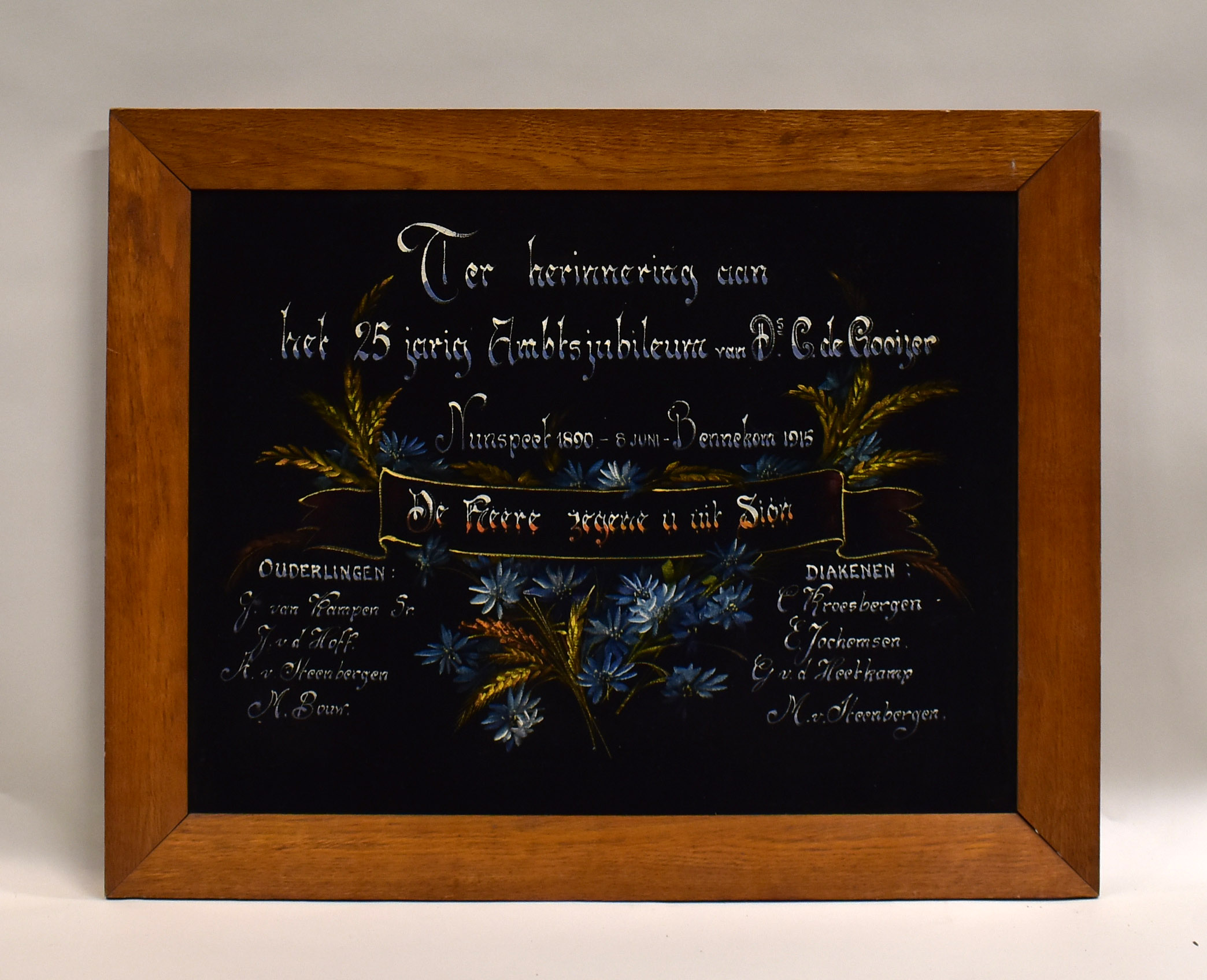 Wandbord t.g.v. 25-jarig ambtsjubileum van ds. C. de Gooyer, met "... De Heere zegene u uit Sion ..."