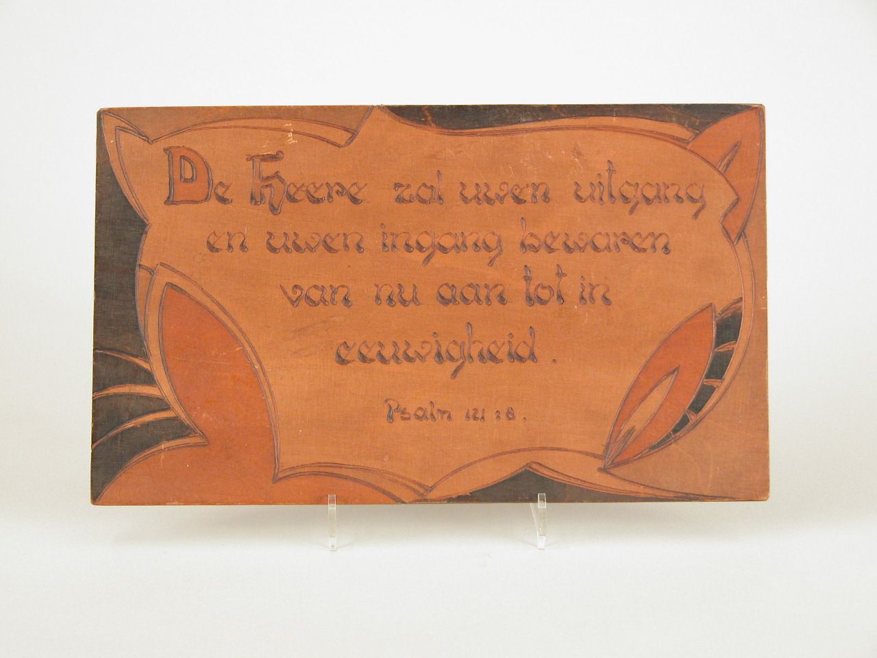 Tekstbord met "De Heere zal uwen uitgang en uwen ingang bewaren van nu aan tot in eeuwigheid. Psalm 121:8."